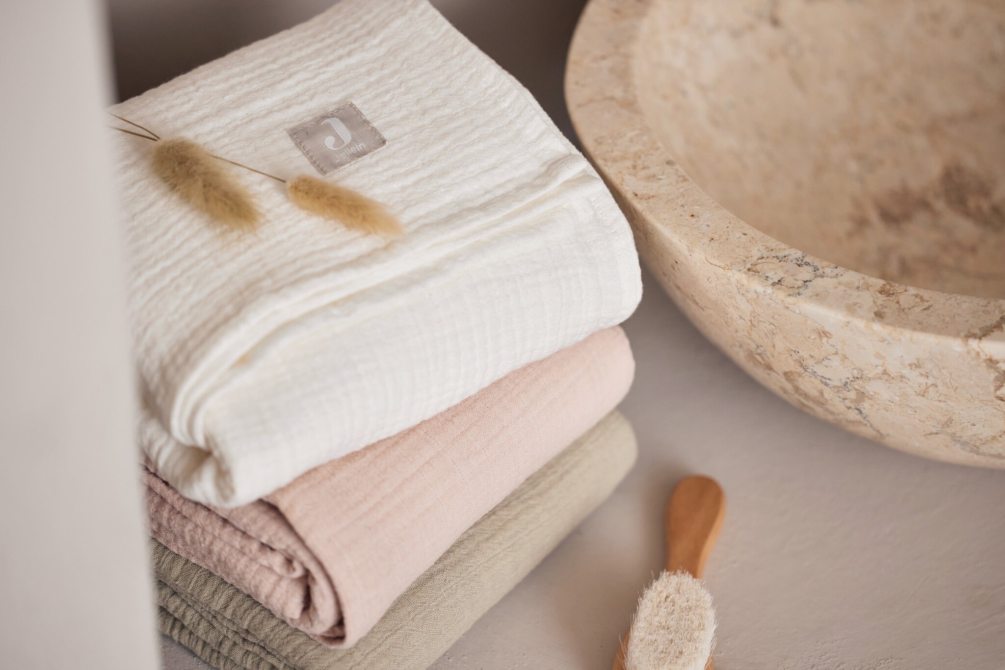 Deze speciale set combineert een harmonieuze kleurencombinatie van moonstone, Wild Rose en Olive Green, gecombineerd met rustig Ivory. Hierdoor voeg je niet alleen zachtheid en veelzijdigheid toe aan de babykamer, maar creëer je ook een stijlvolle en coherente inrichting. Houd je kleintje comfortabel en omringd met zachtheid met onze hydrofiele doeken.