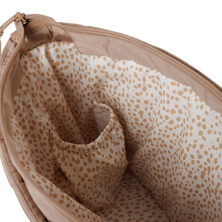 Binnenin is de organizer voorzien van ons kenmerkende 'dotted' printje, wat niet alleen leuk is om naar te kijken maar ook handig om spulletjes snel te vinden. Dankzij twee opbergvakjes met elastieke bovenkant kun je flesjes en kleine items veilig opbergen. De twee insteekvakken aan de buitenzijde met dezelfde 'dotted' binnenkant voegen extra opbergruimte toe.