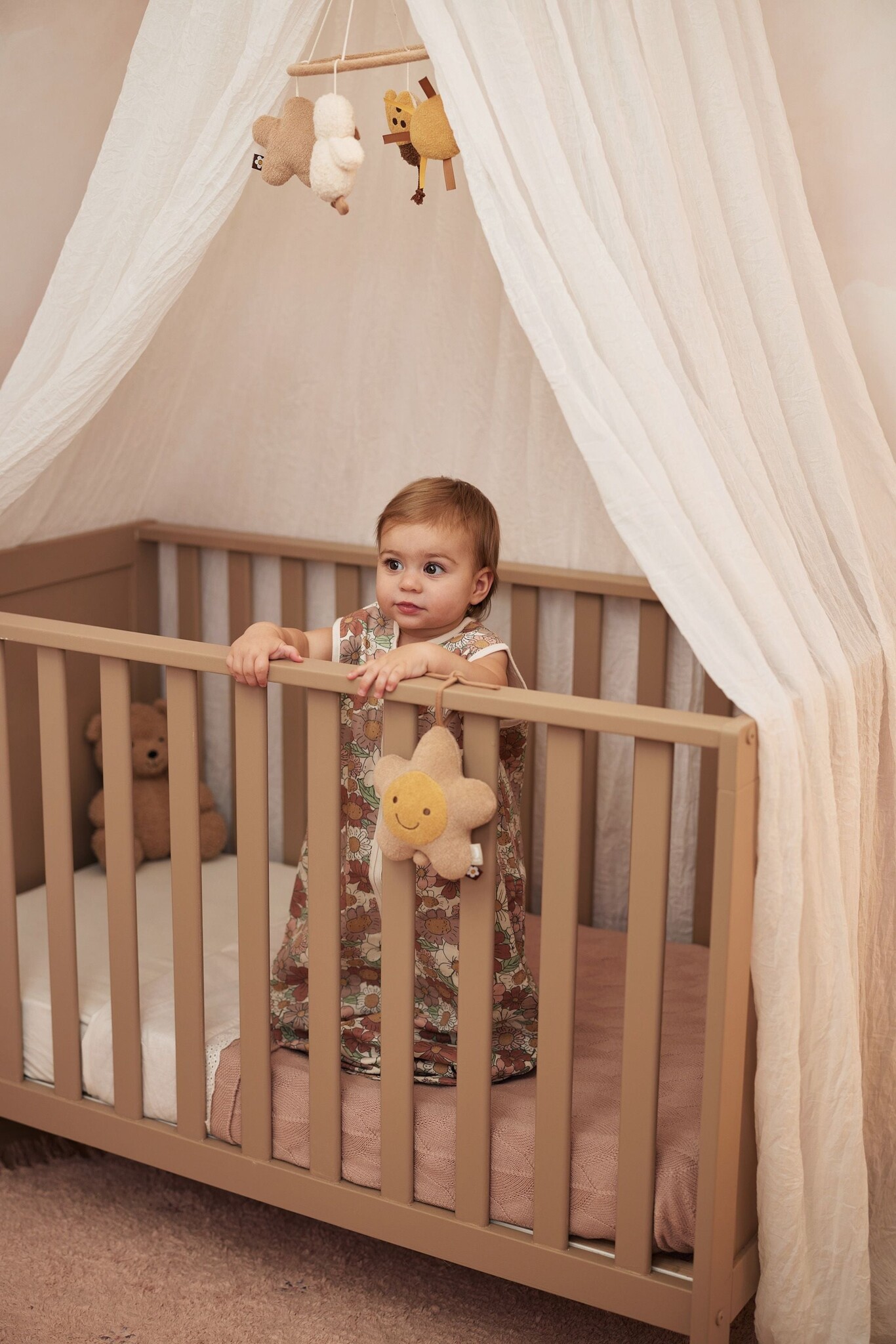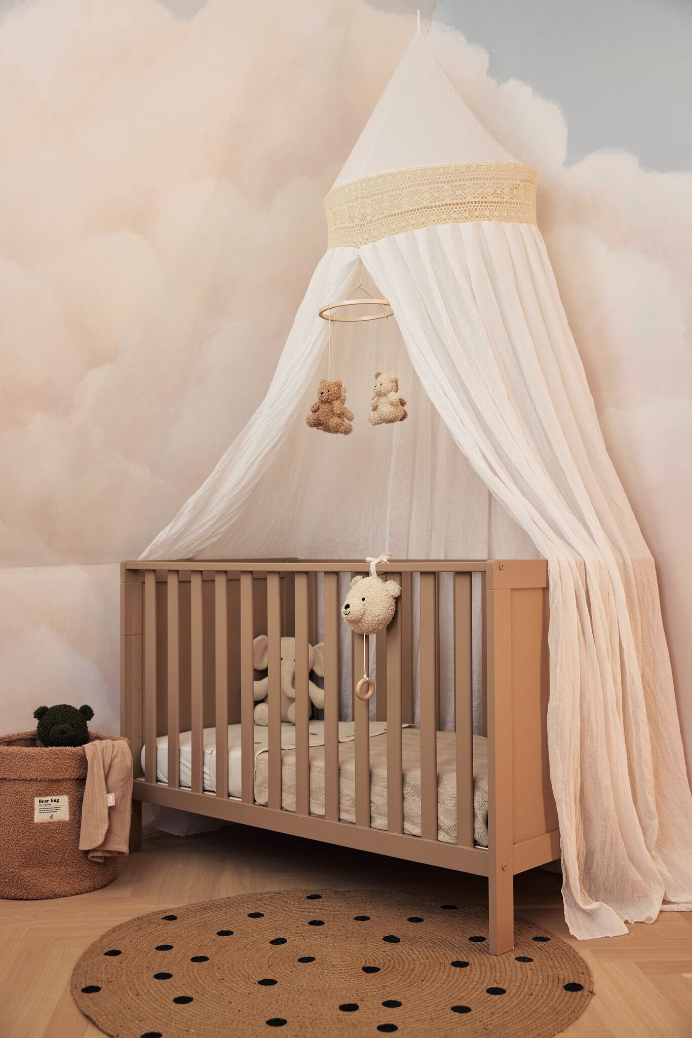 Deze prachtige vintagelook klamboe maakt van het babybed een knusse slaapplek. En je zult zien: zodra je de klamboe hebt opgehangen is de babykamer af. Het geeft sfeer en geborgenheid.