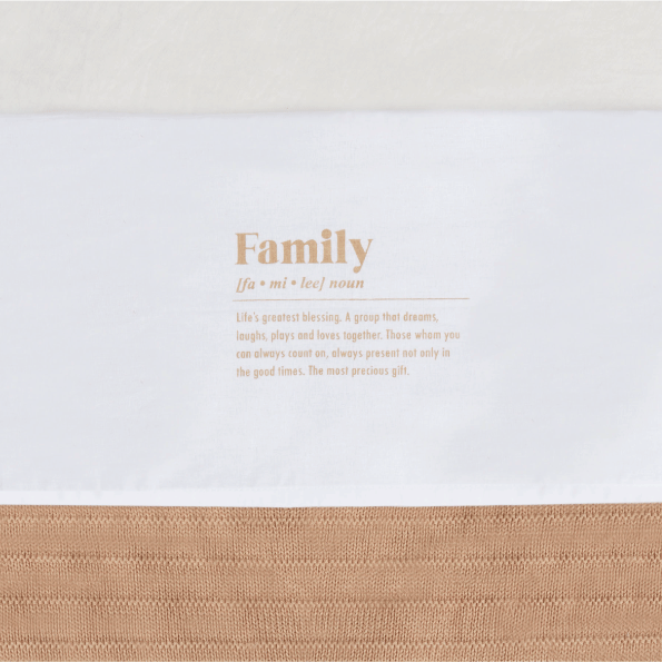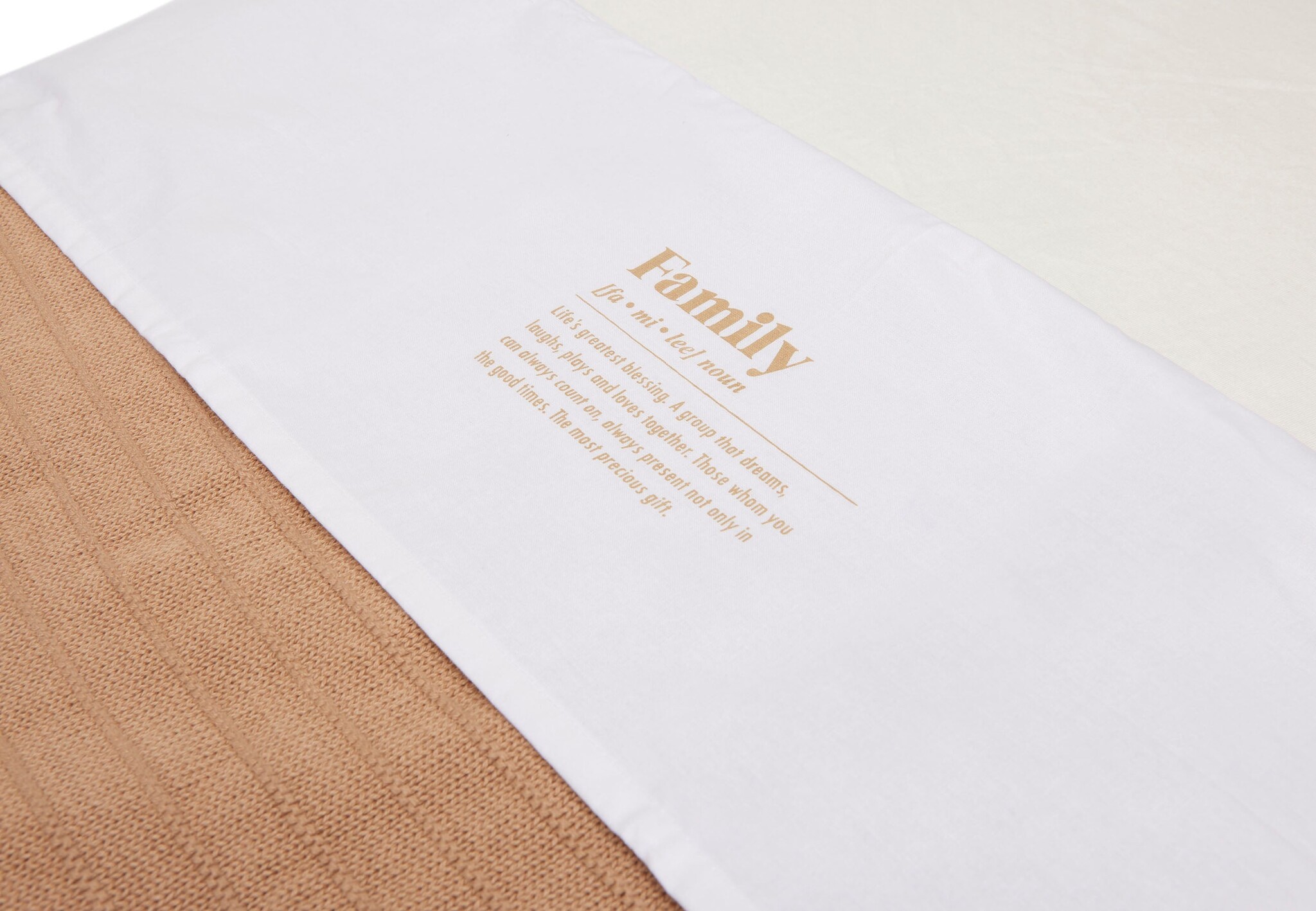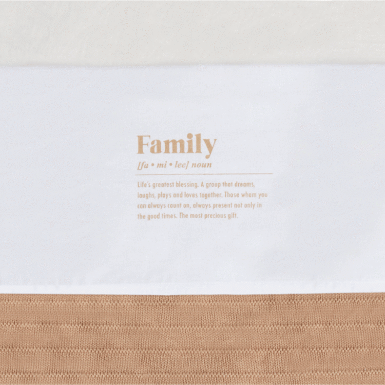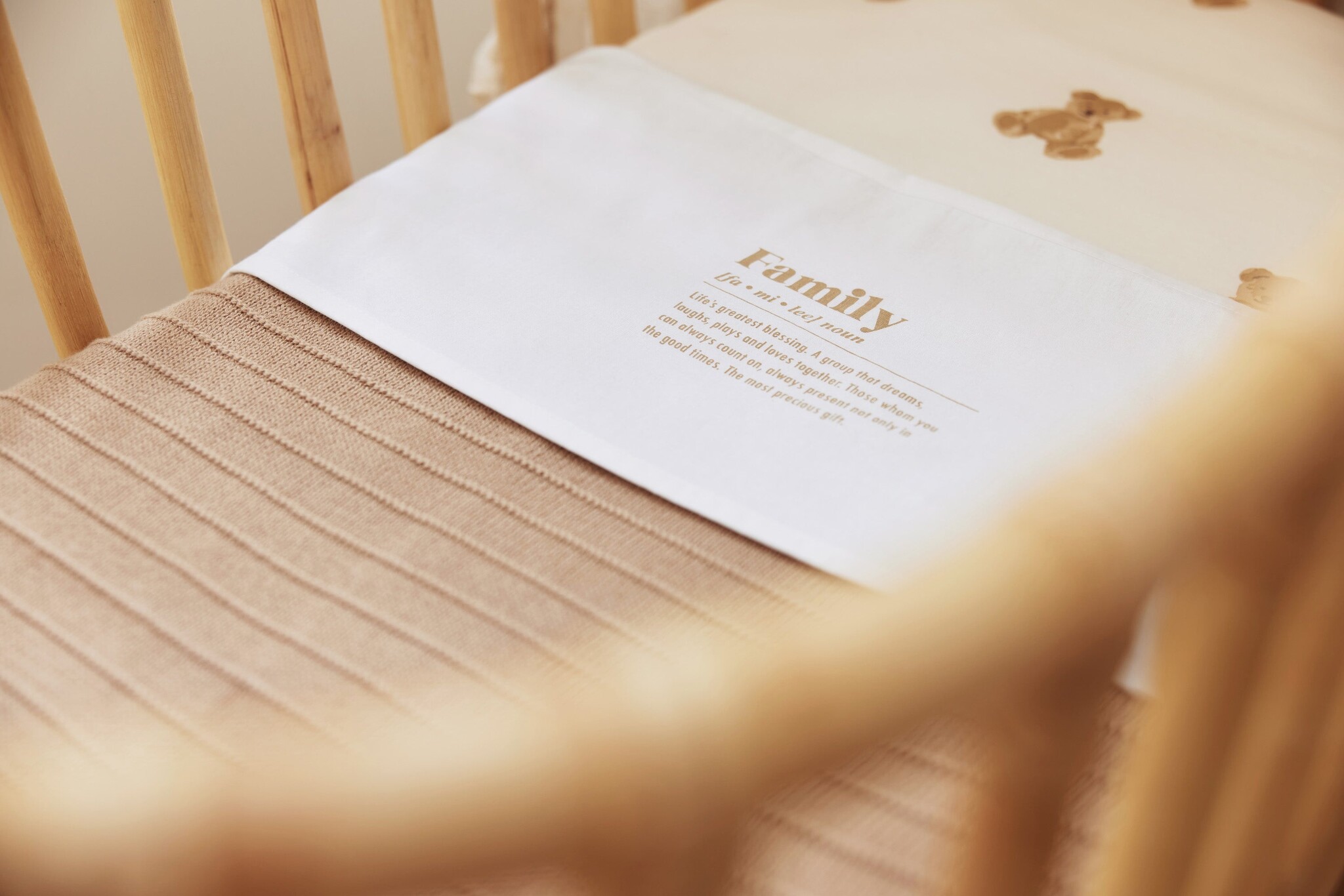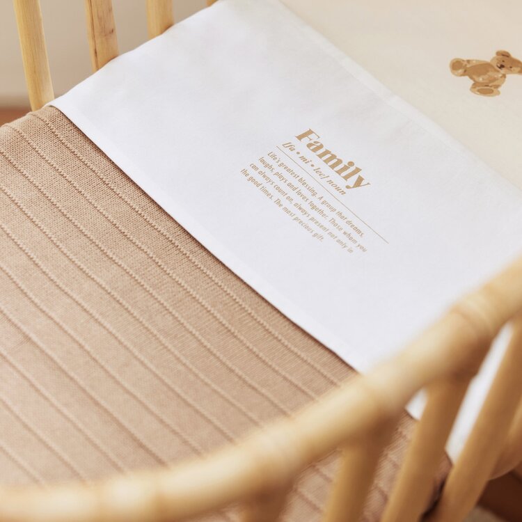 Met een wit lakentje kun je het bedje van jouw baby veilig, kort en strak opmaken. Door de zijkanten van het lakentje onder het matrasje te stoppen, slaapt jouw kleintje niet alleen veilig, maar heeft het ook een geborgen gevoel. Dit lieve lakentje met de tekst 'Family' past perfect bij de dekens uit het Pure knit thema van Jollein. Met een klamboe of sluier in de kleur Biscuit maak je het kamertje van jouw kleintje helemaal af!