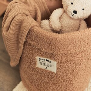 De buitenkant is gemaakt van de zachte Boucle 100% polyester. De binnenkant van het mandje is gemaakt van 100% jersey katoen.