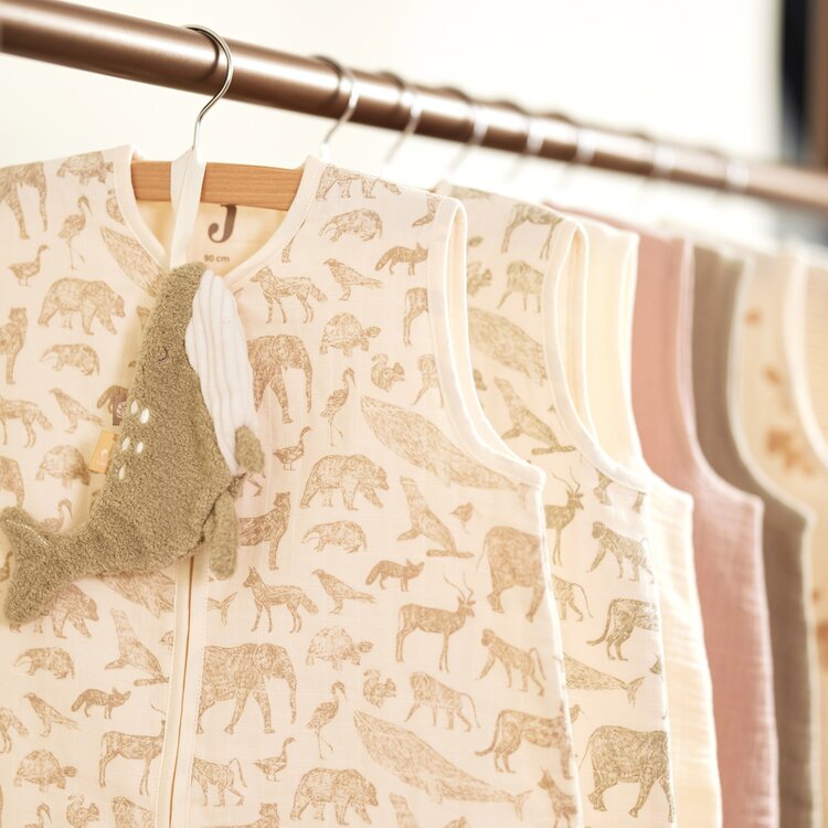 Onze baby slaapzakjes, gemaakt van nog zachter hydrofiel materiaal, zijn de perfecte keuze om je kleintje in alle comfort te laten slapen. Deze schattige slaapzakjes zijn voorzien van een vrolijke dierenprint, verkrijgbaar in Olive Green en Nougat. Ze houden je baby warm en knus gedurende de hele nacht, terwijl ze er ook nog eens superleuk uitzien. Zorg voor een goede nachtrust en stijl met onze hydrofiel slaapzakjes! Het slaapzakje is verkrijgbaar in 70,90 en 110 cm en heeft een TOG van 0.5. Perfect voor de zomer!