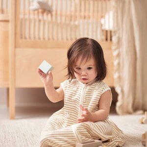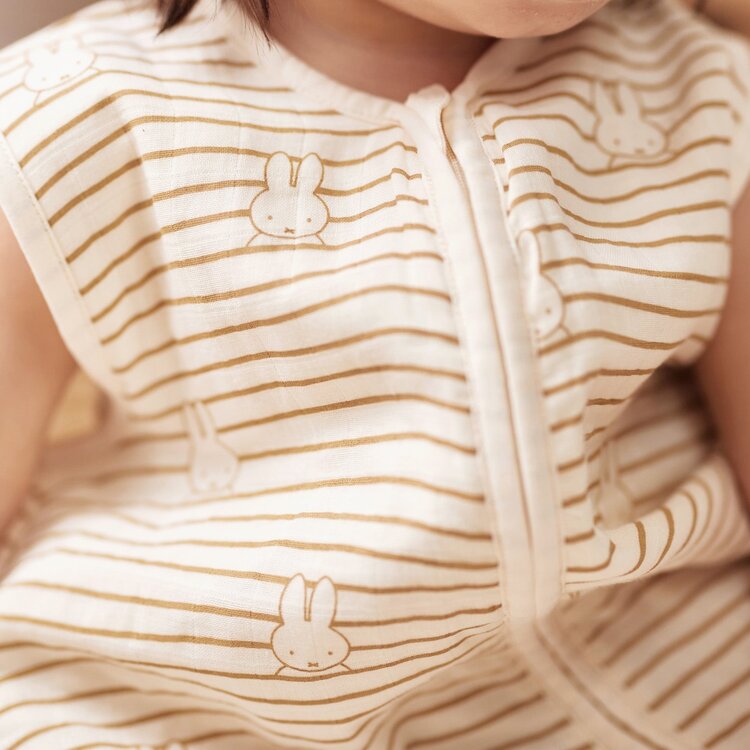 Laat je kleintje heerlijk slapen in ons zachte hydrofiele slaapzakje met schattige streepjes en het herkenbare silhouet van Nijntje. Met een TOG-waarde van 0.5 is dit slaapzakje ideaal voor een goede nachtrust. Beschikbaar in de maten 70 cm, 90 cm en 110 cm, kan je kleintje blijven genieten van Nijntje terwijl ze comfortabel en knus slapen. Dit slaapzakje is verkrijgbaar in twee prachtige kleuren: blauw en Biscuit. Een onmisbaar slaapzakje voor Nijntje-fans!
