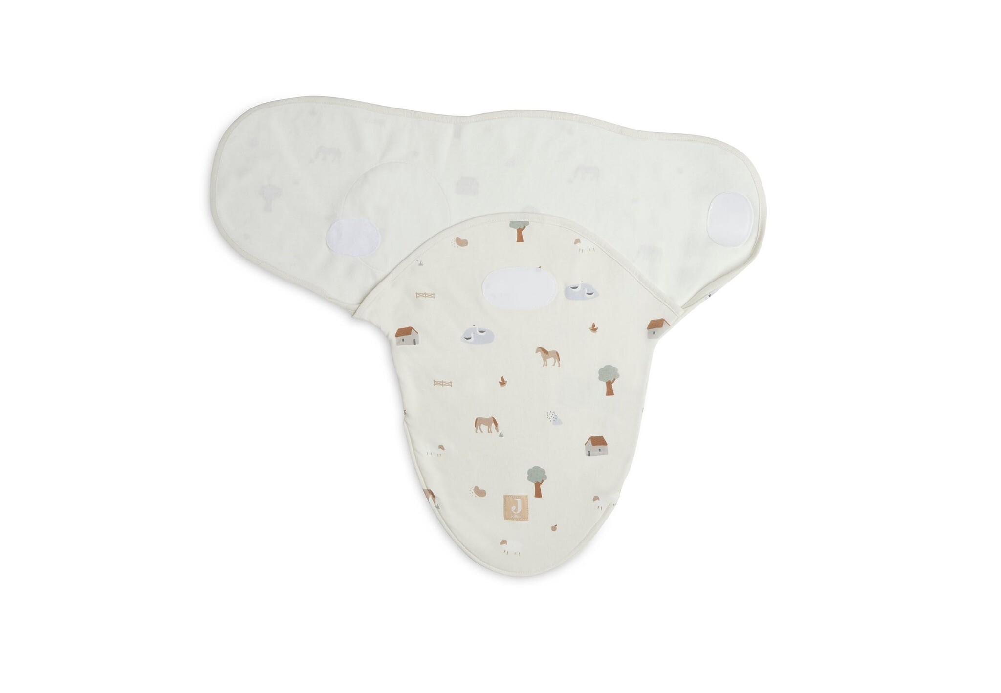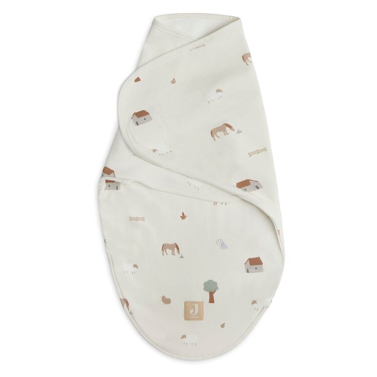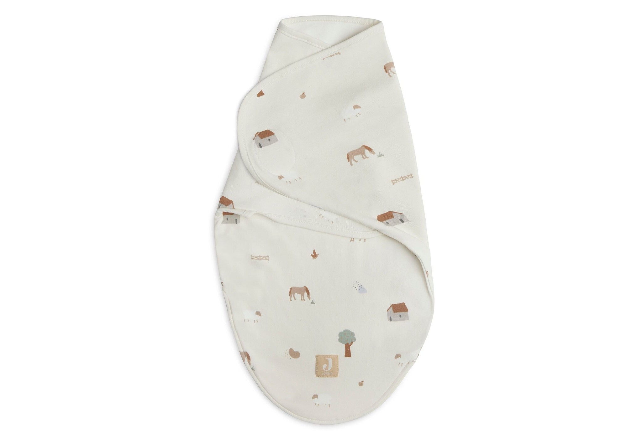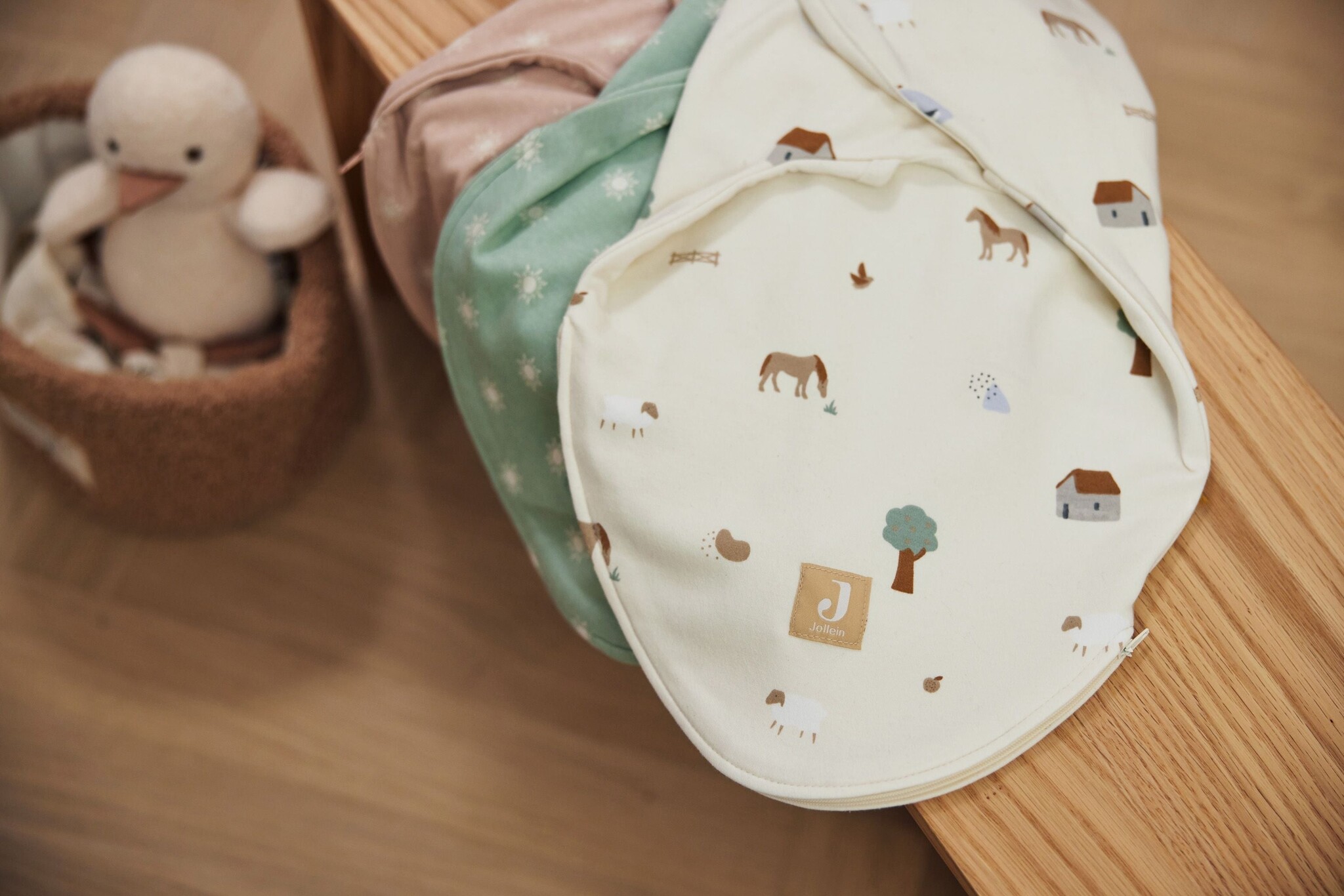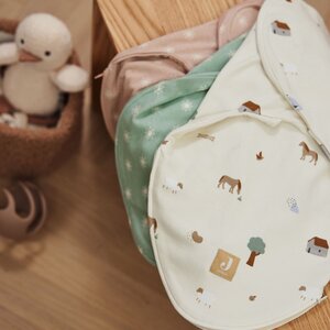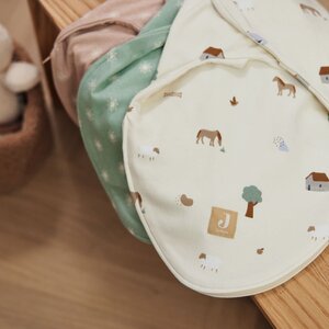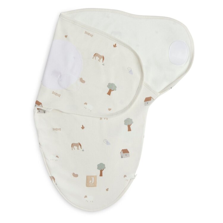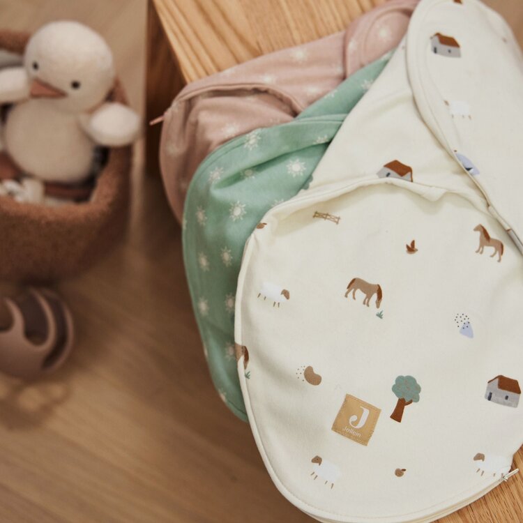 Deze fijne wrapper slaapzak zorgt ervoor dat je je kleine baby goed kan inbakeren. Hij is geschikt voor baby's van 0-3 maanden. Deze wrapper slaapzak heeft een leuke Farm print en heeft een TOG waarde van 0.5. Het is een fijne oplossing voor als je een onrustige baby hebt. De inbakerzak is makkelijk aan te doen met de stevige en toch zachte klittenband. Aan de onderkant van de wrapper zit een handig ritsje, handig voor het verschonen van een luier. Je ritst de onderzijde open en de rest van de wrapper kan aanblijven. Goed slapen is belangrijk voor de ontwikkeling van je baby, maar dat valt nog niet mee. Zo zijn onverwachte bewegingen van eigen armen en handjes genoeg reden om wakker te worden en het op een huilen te zetten. Deze inbakerdoek is volgens de laatste inzichten ontworpen en ontwikkeld. De armpjes en borst worden lekker stevig ingepakt terwijl de beentjes vrij kunnen blijven bewegen. Ook verkrijgbaar met andere printjes.
