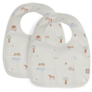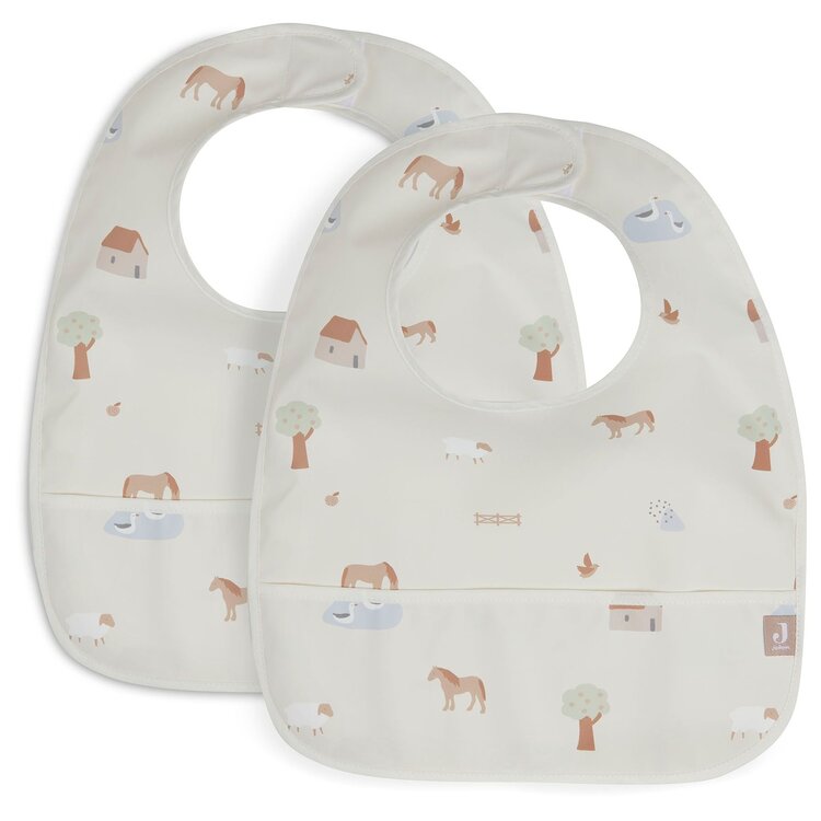 Je sluit de waterproof slab met klittenband aan de achterzijde. Dat blijft goed zitten waardoor je baby niet gemakkelijk zelf de slab kan uittrekken. De slab is afneembaar met een vochtige doek. De slab heeft een leuke botanische print en is verkrijgbaar in twee kleuren.