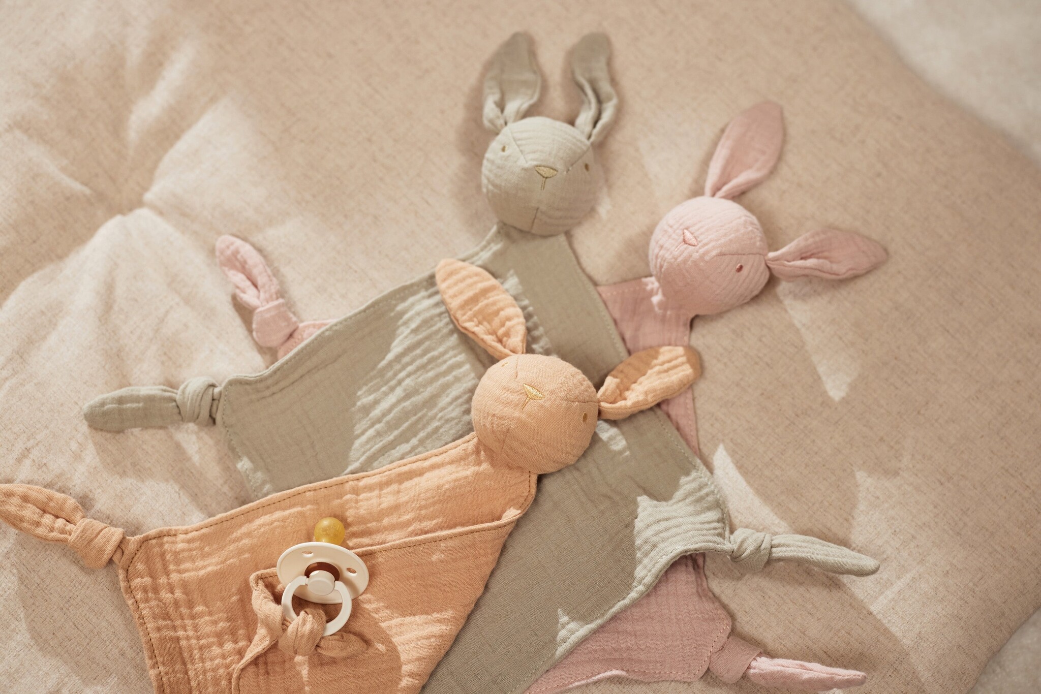 Dit schattige speendoekje, in de vorm van een lief konijntje, is gemaakt van extra zacht wrinkled hydrofiel. Het doekje is niet alleen een knuffelvriend voor je baby, maar ook een handig accessoire om de speen binnen handbereik te houden. Laat je kleintje knuffelen met dit zachte konijntje voor troost en gemak, altijd binnen handbereik. Shop dit adorbs speendoekje in Olive Green, moonstone en Wild Rose.