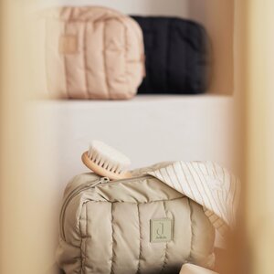 Verkrijgbaar in modieuze kleuren zoals zwart, Biscuit en Olive Green, past deze on trend pouch moeiteloos bij elke stijl. Praktisch, stijlvol en multifunctioneel, deze pouch is een echte game-changer voor elke moeder. Voeg hem vandaag nog toe aan je collectie!