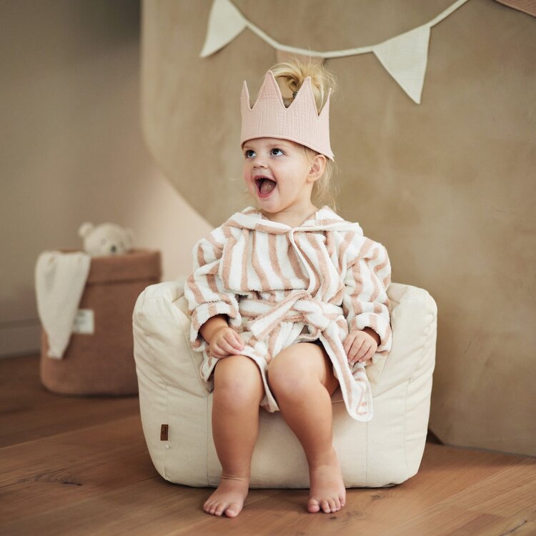 Maak van elke dag een feestje van met deze leuke stoffen vlaggenlijn! De vlaggetjes hebben de mooie neutrale kleuren Biscuit en Ivory. De vlaggetjes zijn herbruikbaar en gemaakt van 100% hydrofiel katoen. In totaal zitten er 6 vlaggetjes aan de lijn: 3 Wild Rose kleurige en 3 Ivory of verkrijgbaar in de combi jeans blue/Olive Green. Aan beide zijden vind je een touwtje van 20 cm om de vlaggenlijn mee op te hangen. Super leuk voor feestjes of voor op de babykamer! Maak het feestje compleet met de bijpassende verjaardagskroon en de stoffen ballon.