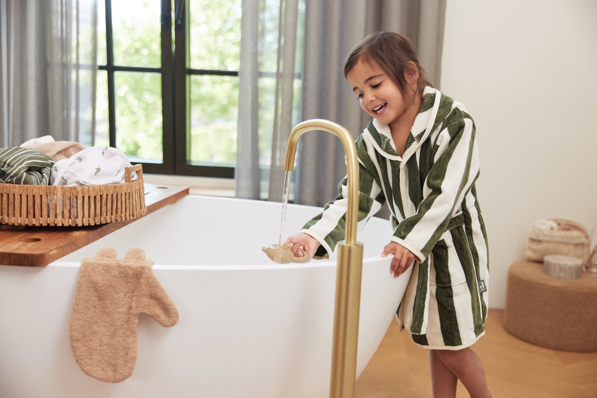 De zachte, lange washand is handig om te gebruiken in combinatie met het leuke badstoffen badjasje met oortjes. Zo ben je helemaal ready voor het badje. Bekijk de uitgebreide collectie.