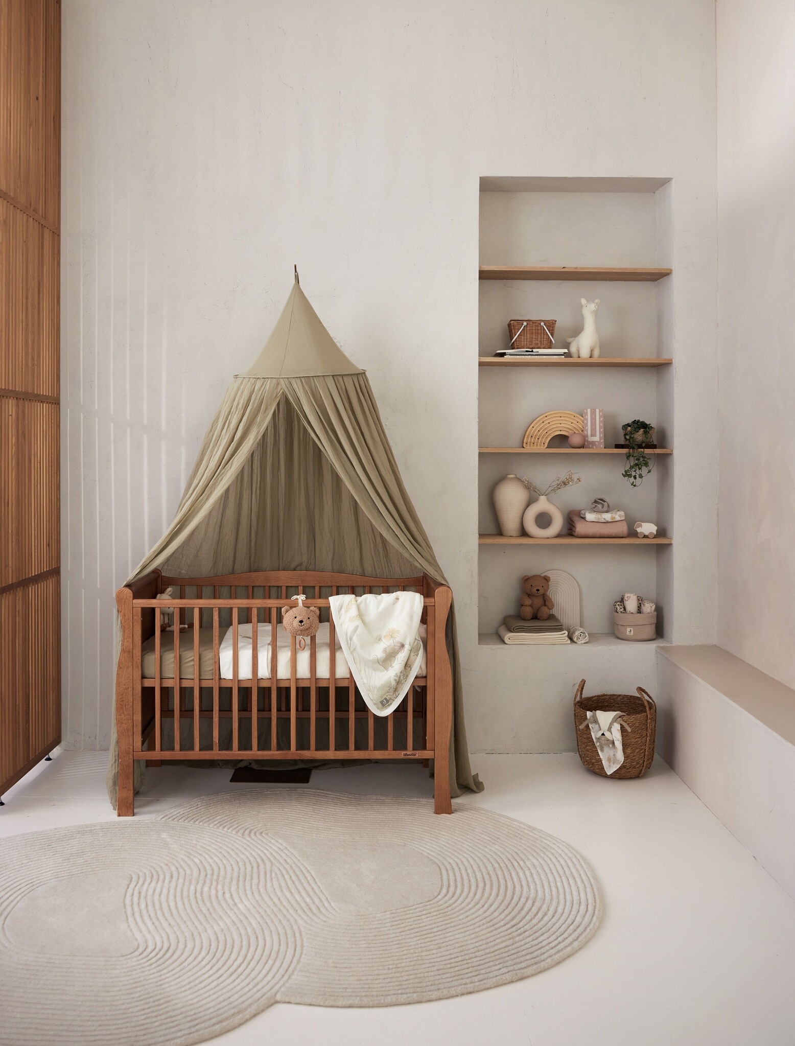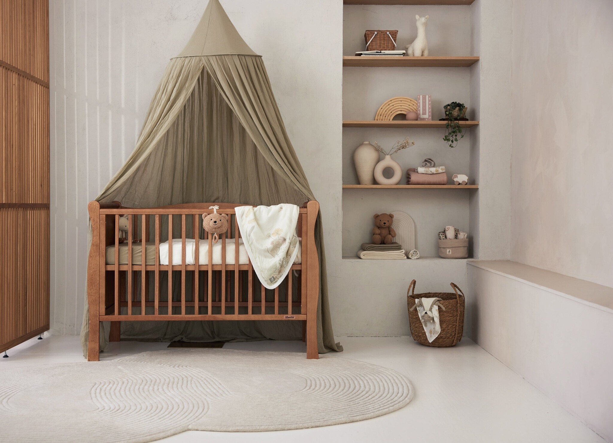 De wikkeldeken heeft een handig lusje om hem na gebruik op te hangen en is gemaakt van OEKO- TEX gecertificeerd katoen.