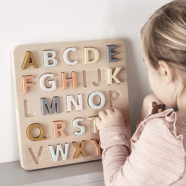 De Kid's Concept Houten Puzzel - ABC is een educatief en leuk speelgoed voor kinderen vanaf 3 jaar. Deze houten puzzel helpt kinderen op een speelse manier kennis te maken met het alfabet.
