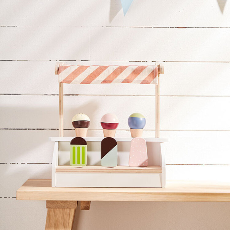 Welk kind is er niet gek op ijsjes? Het liefst eten ze elke dag een ijsje! Met de houten ijsjesstand Bistro van Kids Concept kunnen ze zelf ijsjes uitdelen en verkopen. Sommige onderdelen kun je zelfs met klittenband uit elkaar halen waardoor je verschillende smaken en kleuren kunt combineren. Gegarandeerd ijspret!