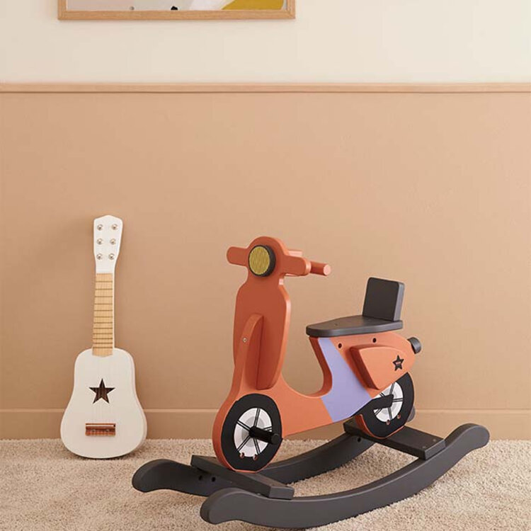Een stoere schommelscooter van het Zweedse merk Kid's Concept om lekker mee te spelen of om op te schommelen. Laat jouw kindje spelenderwijs haar stabiliteit en evenwicht leren bewaren. Tevens is het een echte eye catcher voor de kinder- of woonkamer! De scooter heeft lange lopers die de kans op kantelen minimaliseert, zodat je kindje veilig kan schommelen.