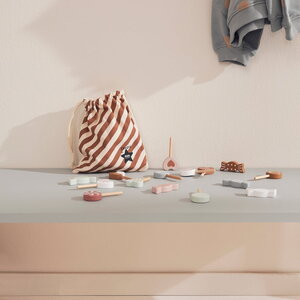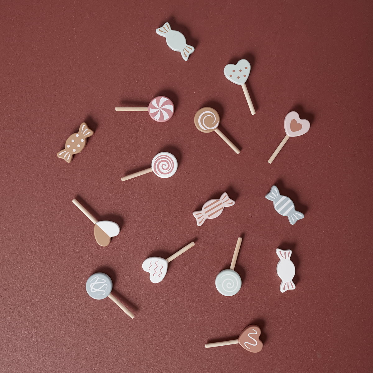 De houten snoepjes van Kid's Concept zijn niet slecht voor de tandjes en zelfs niet ongezond. Deel ze uit aan je vriendjes en vriendinnetjes of open je eigen snoepwinkel. Maar wel niet echt opeten hoor! Deze lekstokken en snoepjes komen in vrolijke kleurtjes en zitten in een leuk opbergzakje. Zo hou je ze mooi bij elkaar!
