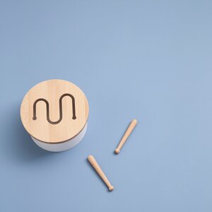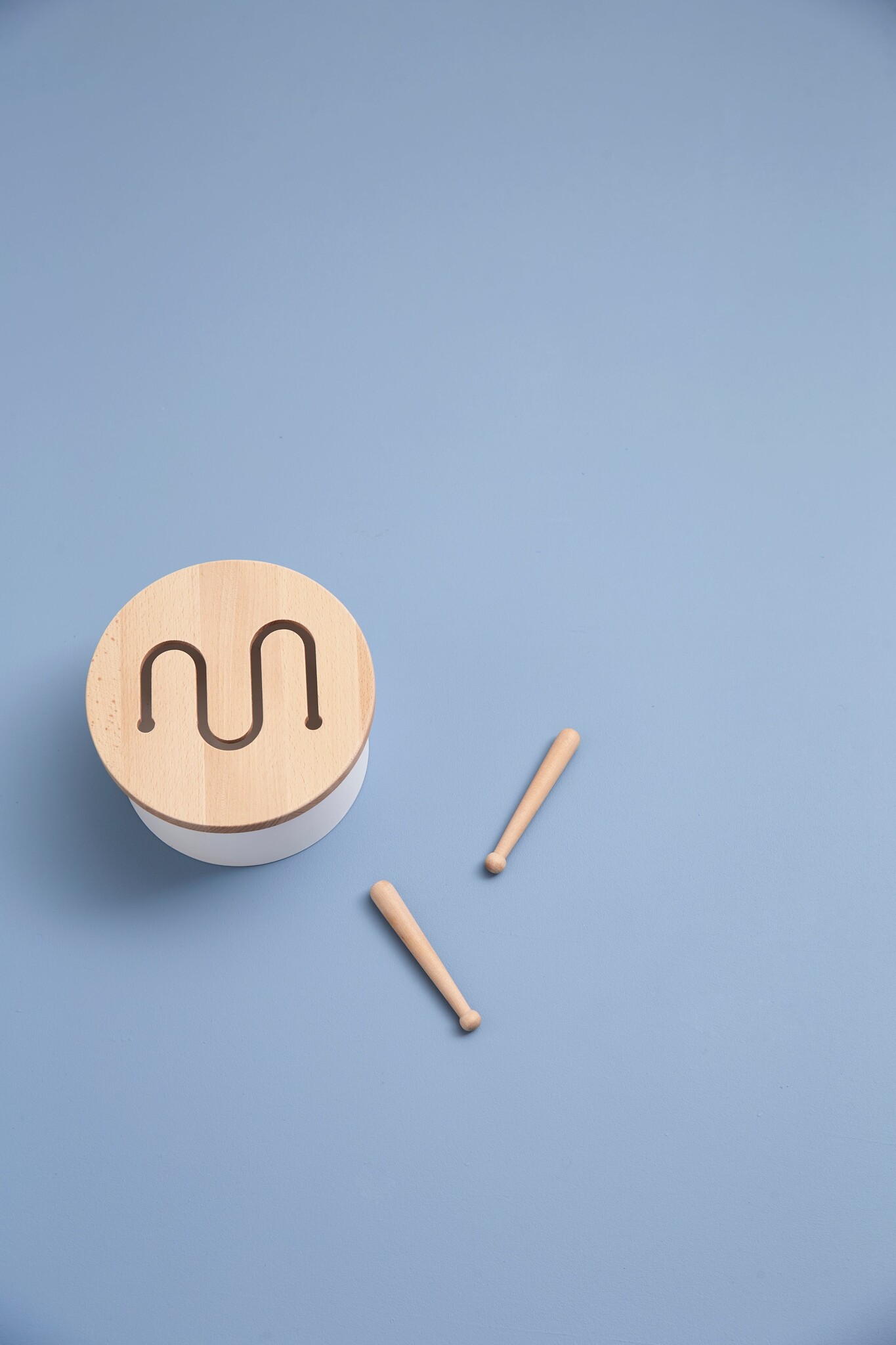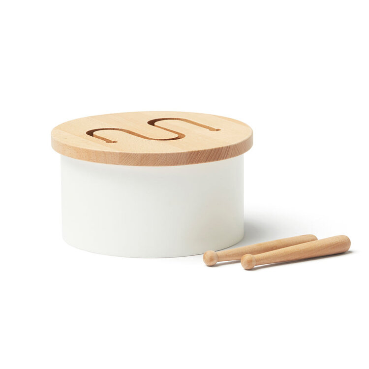 Hoe leuk is het voor onze jonge rocksterren om muziek te maken met deze coole witte houten trommel van Kid's Concept!