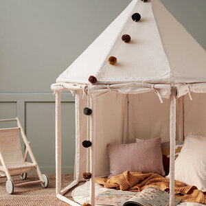Speel in de grote paviljoentent van Kid's Concept waar plaats is voor jou en al je vrienden! Rol de zijkanten op en nodig je vriendjes uit om met je mee te doen in het paviljoen of haal alle zijkanten neer voor een compleet huis om in te spelen.