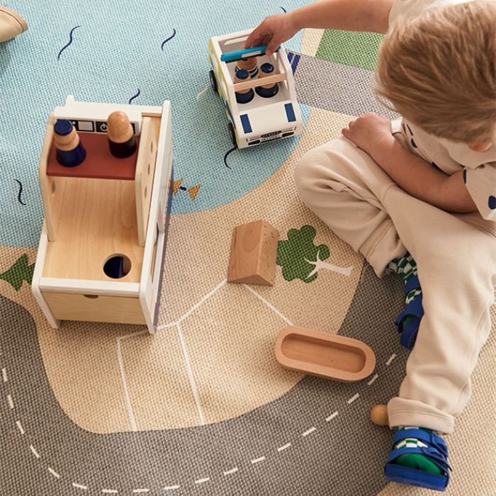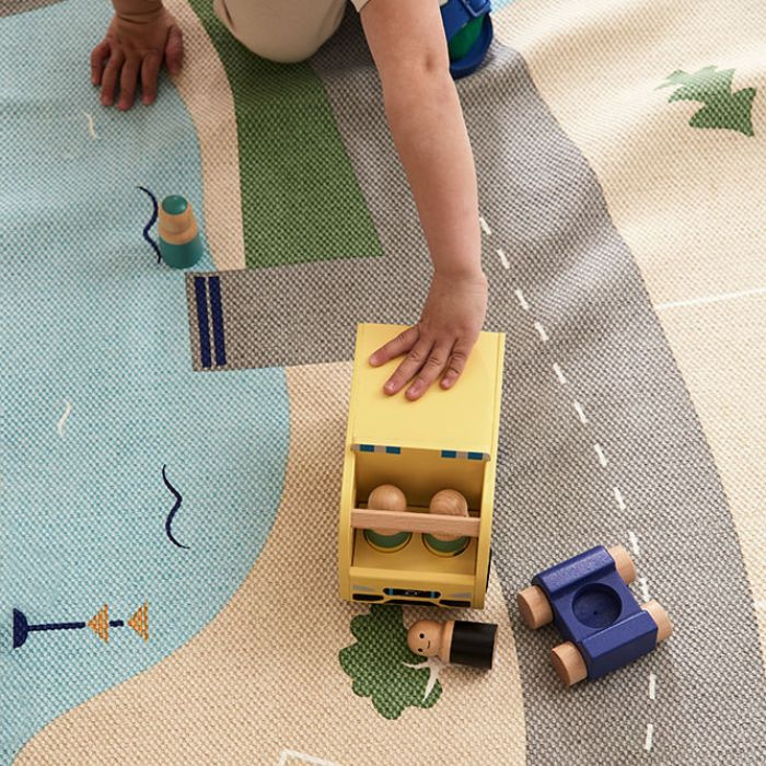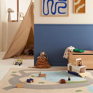Creëer je eigen wereld op dit leuke speeltapijt van Kids Concept. Race met auto's, de bus of een vrachtwagen over het asfalt en vaar met een boot of schip over het water. Het kleed is gemaakt van 100% katoen en dus zacht en warm aan je voeten.
