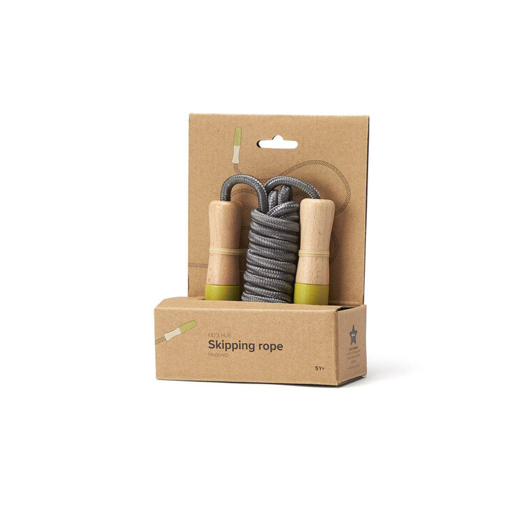 Springtouw met houten handvatten en verstelbare touwlengte. Ideale combinatie van sport en spel om de kinderen lekker te kunnen laten ontladen . Leuk om mee te nemen naar het park of gewoon in de achtertuin.