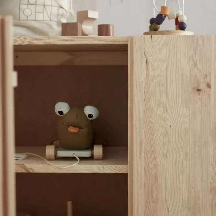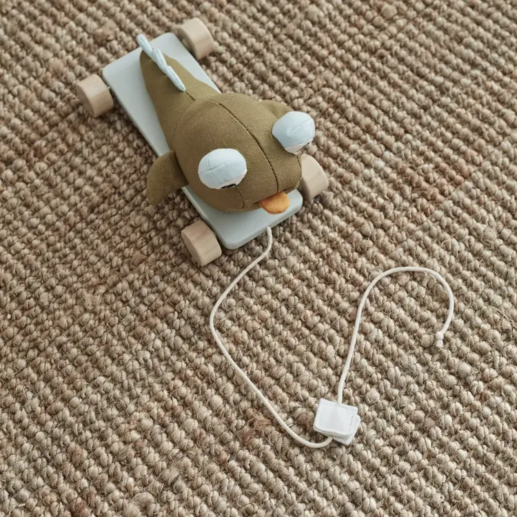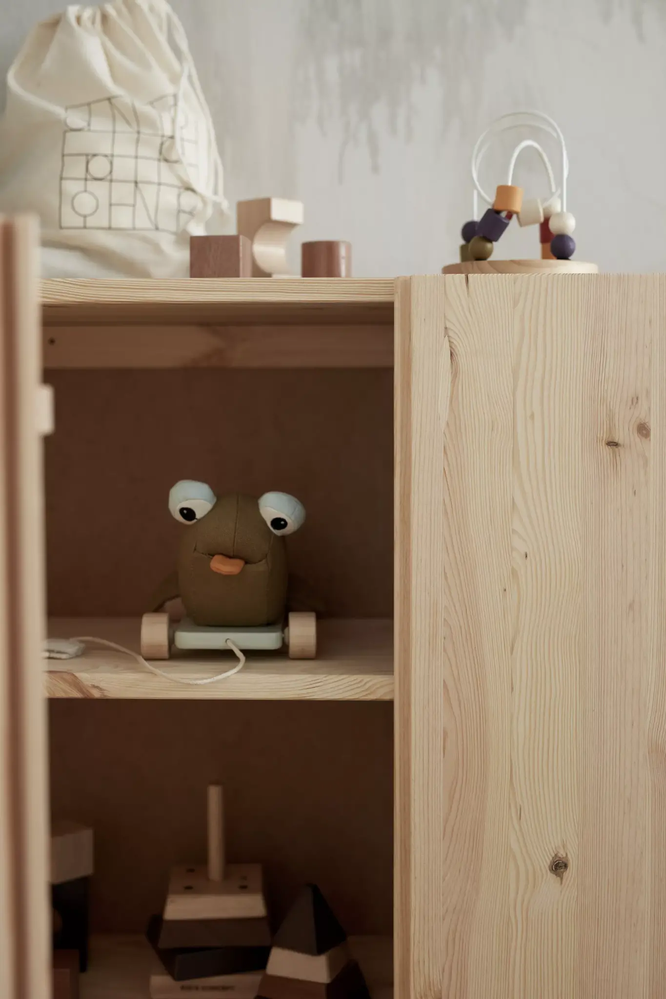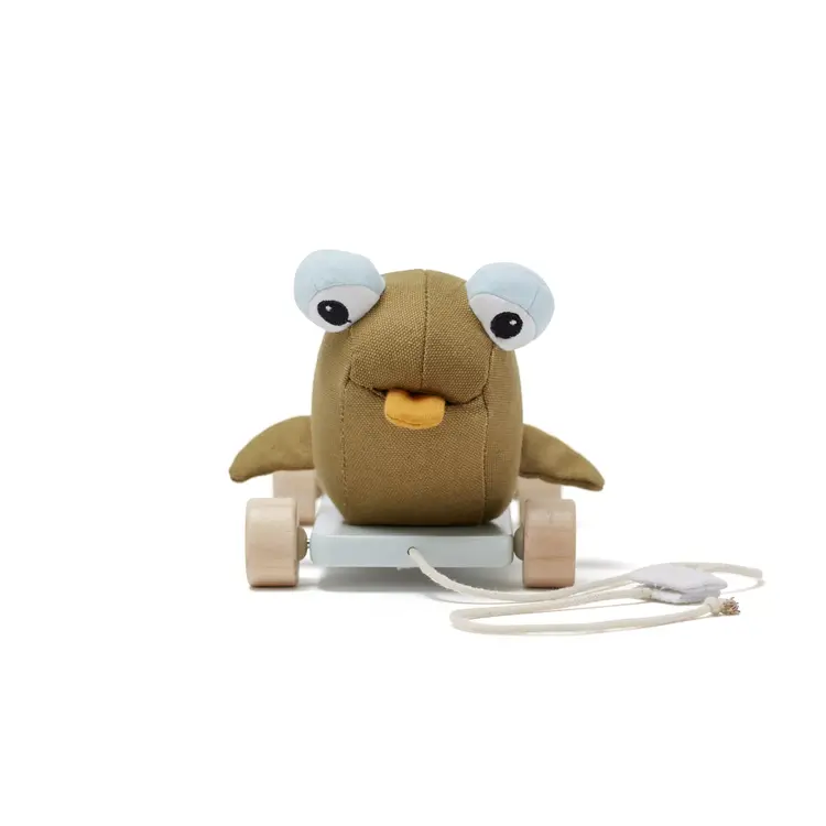 Otto de slijkspringer als trekdier van Kids Concept. De slijkspringer leeft zowel in het water als op het land. Otto is een vrolijk dier en kan ook zijn tong uitsteken! Gemaakt van katoen op een houten karretje, met het touw trek je het diertje overal mee naar toe.