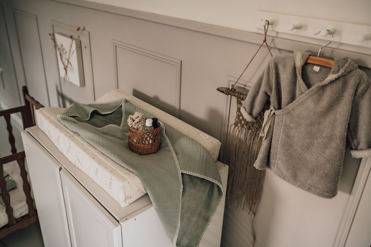 Een aankleedkussenhoes van Koeka zorgt niet alleen voor gemak bij het verschonen van je baby, het maakt ook de styling van je commode af. Voor het comfort van je kleintje en het gemak voor jezelf is een hoes voor het aankleedkussen een echte must-have want door het gladde oppervlak van het aankleedkussen gebruik je deze meestal niet zonder aankleedkussenhoes. Welke overtrek je kiest is natuurlijk afhankelijk van je smaak en het interieur van je babykamer. Omdat een aankleedkussenhoes bij uitstek een product is dat vaak gewassen zal worden, zijn alle hoezen die Koeka maakt voor aankleedkussens machinewasbaar. Een ongelukje is namelijk zo gebeurd dus meerdere hoezen is geen overbodige luxe! Hou je van afwisseling? Kies uit verschillende stijlen en geef je commode steeds een andere look. Check voor een mooi aansluitende aankleedkussenhoes de afmeting van je aankleedkussen. Deze hoes voor het verschoningskussen heeft als afmeting 45x73 cm en past perfect om het aankleedkussen Time to Change van Koeka. De bevestiging van de overtrek is vergelijkbaar met die van een hoeslaken. Je trekt hem gemakkelijk om je verschoningskussen heen en de hoes trekt zichzelf strak door het elastiek aan de onderzijde.
