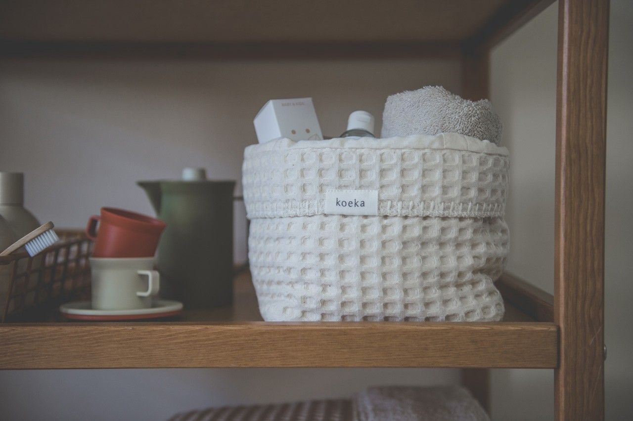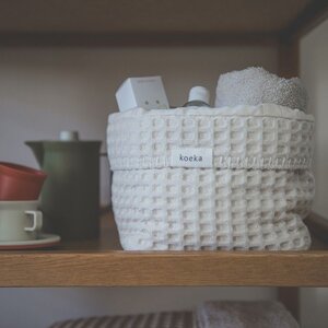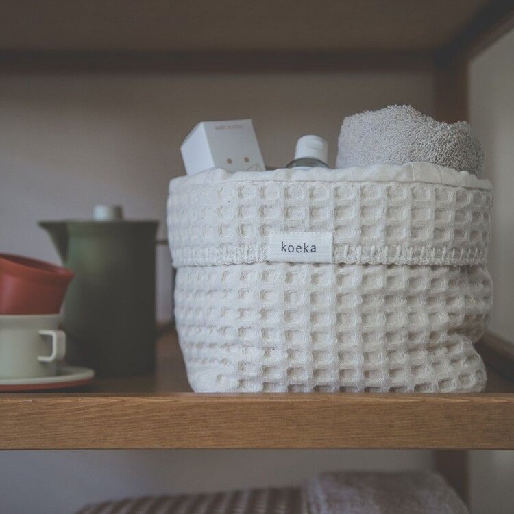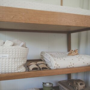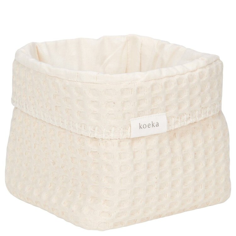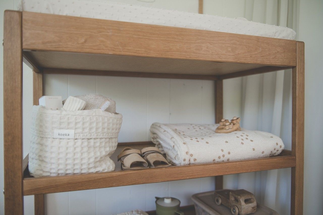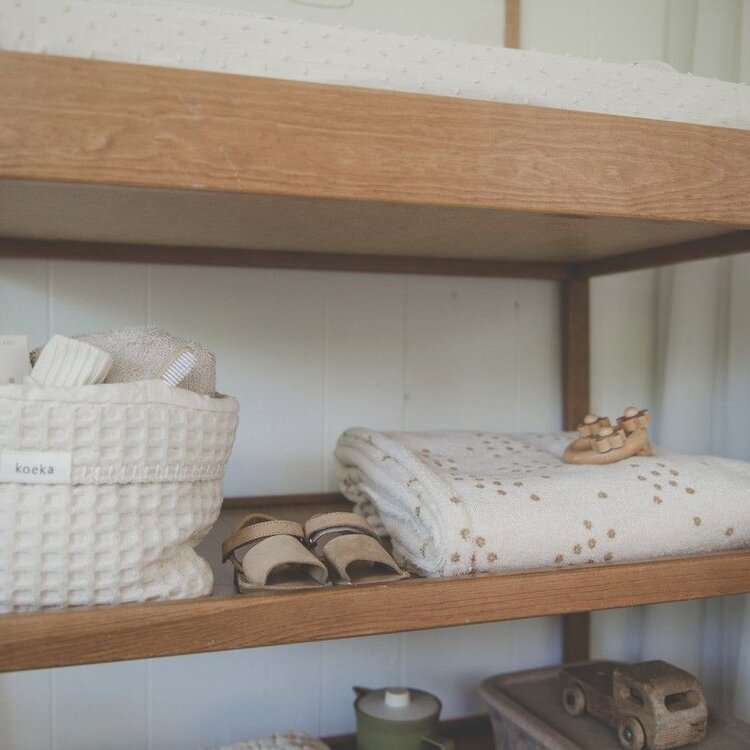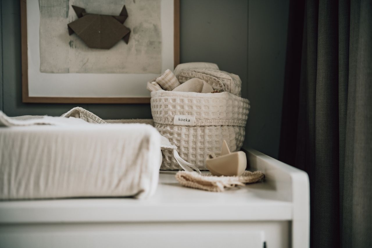 Waar laat je al die losse spulletjes die je nodig hebt tijdens het verschonen of aankleden van je baby? Met een commodemandje heb je alles op een plaats en binnen handbereik. Het mandje is handig en stylish in een en een must-have op de commode! Koeka maakt opbergmandjes in verschillende stijlen en kleuren zodat je er altijd wel een kan vinden die bij het interieur van je babykamer past. Het mandje is aan de binnenzijde verstevigd zodat het niet inzakt en je kan naar eigen smaak de rand omvouwen voor een andere look.