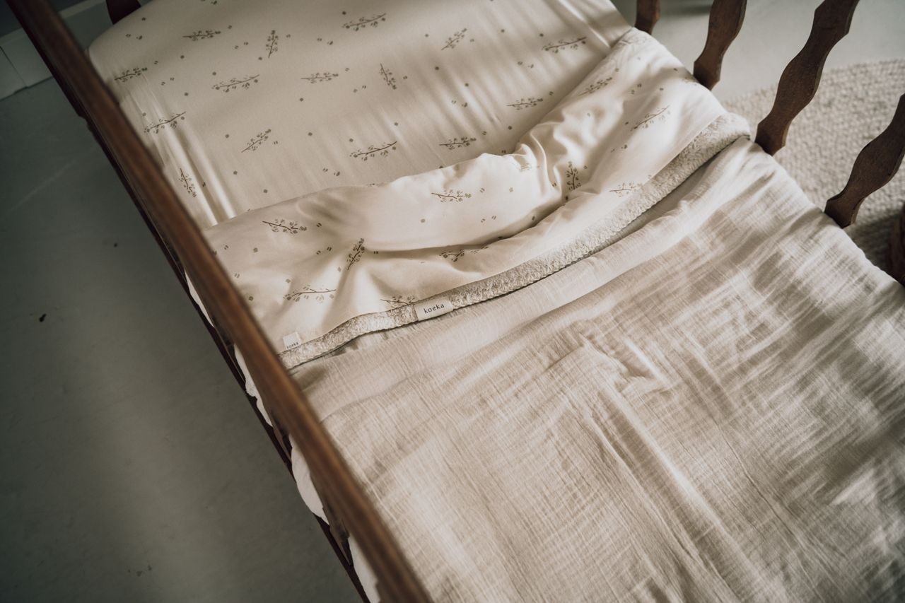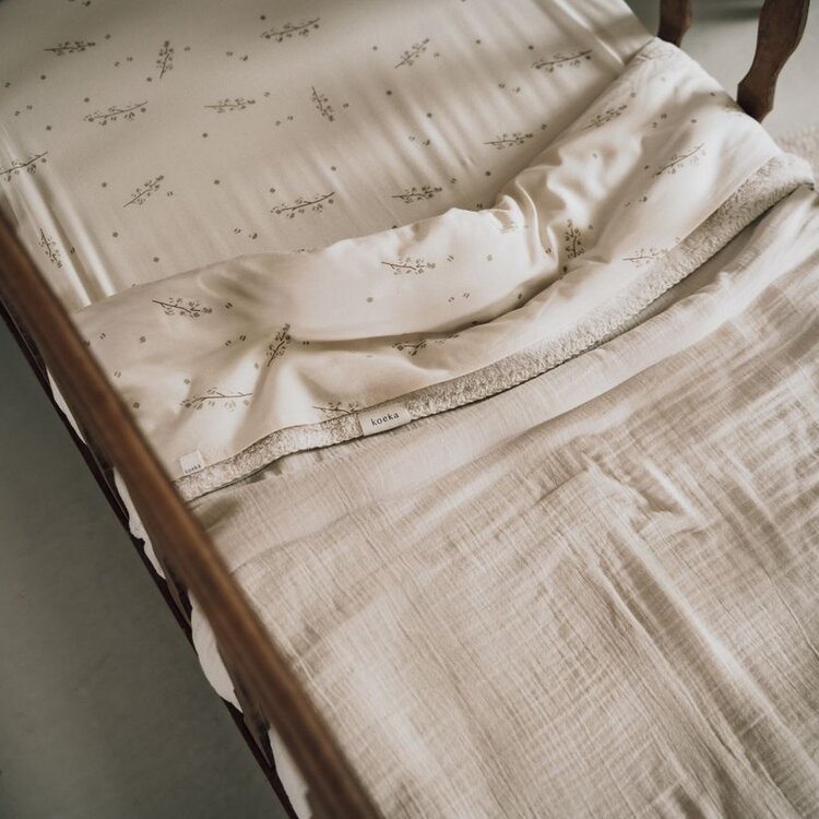 Met het Koeka hoeslaken maak je het plaatje van je kinderbed compleet. Het mooie crispy katoen is heel comfortabel voor je kleintje en zorgt voor een luxueuze uitstraling in je kinderkamer. Door de hoge kwaliteit van de stof kan je het hoeslaken eindeloos wassen. Het hoeslaken spant zich gemakkelijk strak rondom het matrasje door het elastiek aan de onderzijde.