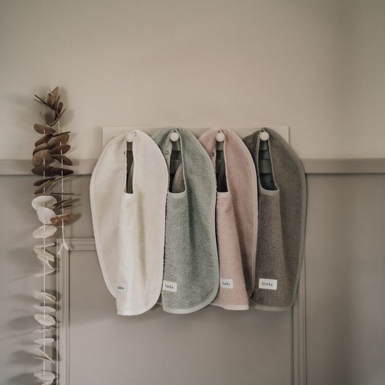 De befaamde Koeka slabber in 2-pack omdat je er nooit genoeg kunt hebben!Houd de kleding van je baby schoon met deze praktische Koeka slabber. Door het fijne grote formaat beschermt de slabber de kleding goed tegen knoeien. Omdat de slab een drukknoopsluiting met twee verschillende standen heeft, is deze geschikt voor zowel baby als dreumes en kan je hem dus extra lang gebruiken. De afwerking met de bies die matcht met de kleur van het badstof geeft de slabber een eigen look. Het mooie, lusvaste en vochtopnemende badstof van biologisch katoen is gemakkelijk en eindeloos te wassen.