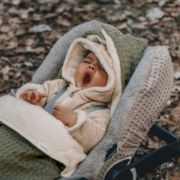 Deze met teddy gevoerde voetenzak past in een autostoel 0+ met drie- of vijfpuntsgordel en houdt je kleintje lekker warm als je in de koudere maanden op pad gaat. Voor extra warmte en comfort kan je door middel van een klittenbandsluiting aan de bovenzijde een hoodie vormen. De voetenzak is eenvoudig te openen met een rits en de bovenkant kan je omslaan en vastzetten met veilige drukkers. Zo zit je kleintje er heerlijk bij en ga jij stylish op pad!