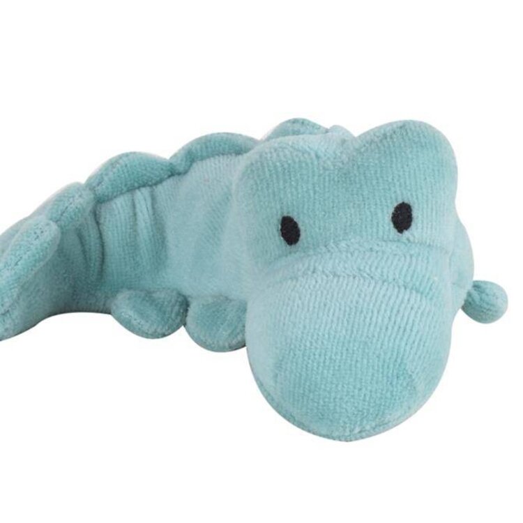 De krokodil is van organisch katoen (GOTS gecertificeerd) en wanneer je erin knijpt maakt het knuffeltje geluid. Het knuffeltje kan gewassen worden op een handwas programma.