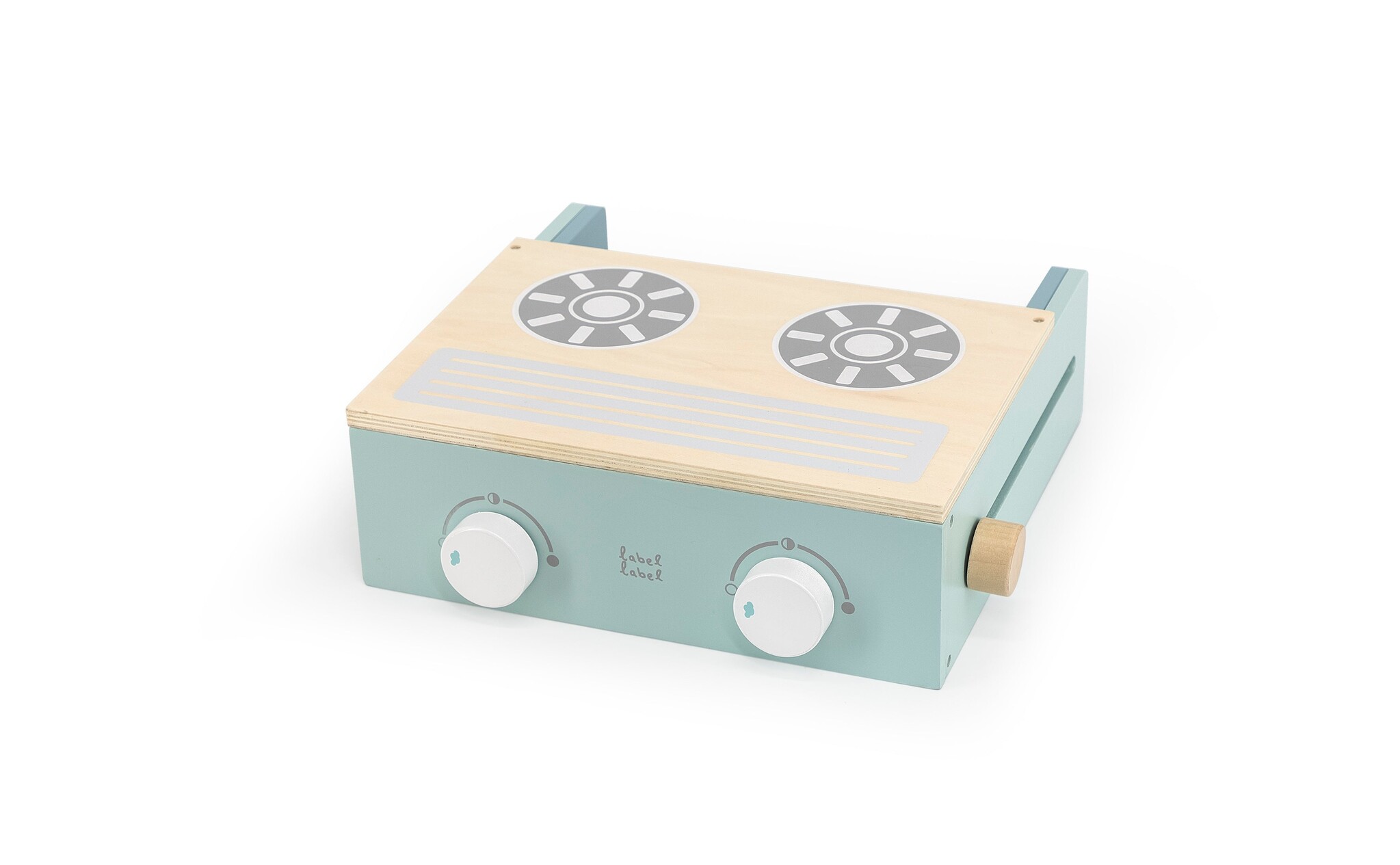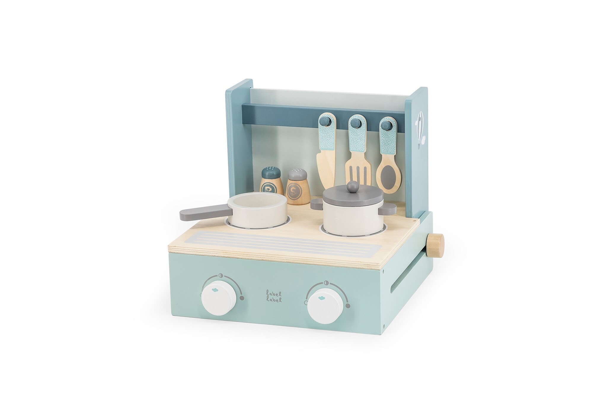 Dit mooie, compacte kookfornuis in Label Label stijl neemt je kindje makkelijk overal mee naartoe. Het vouwbare fornuis bestaat uit kwaliteitsvol FSC gecertificeerd hout en werd voorzien van prachtige kleuren met behulp van kindvriendelijke verf op waterbasis.
