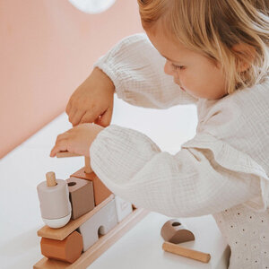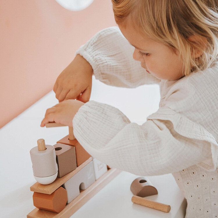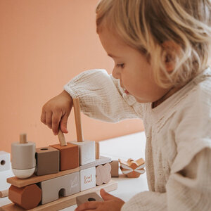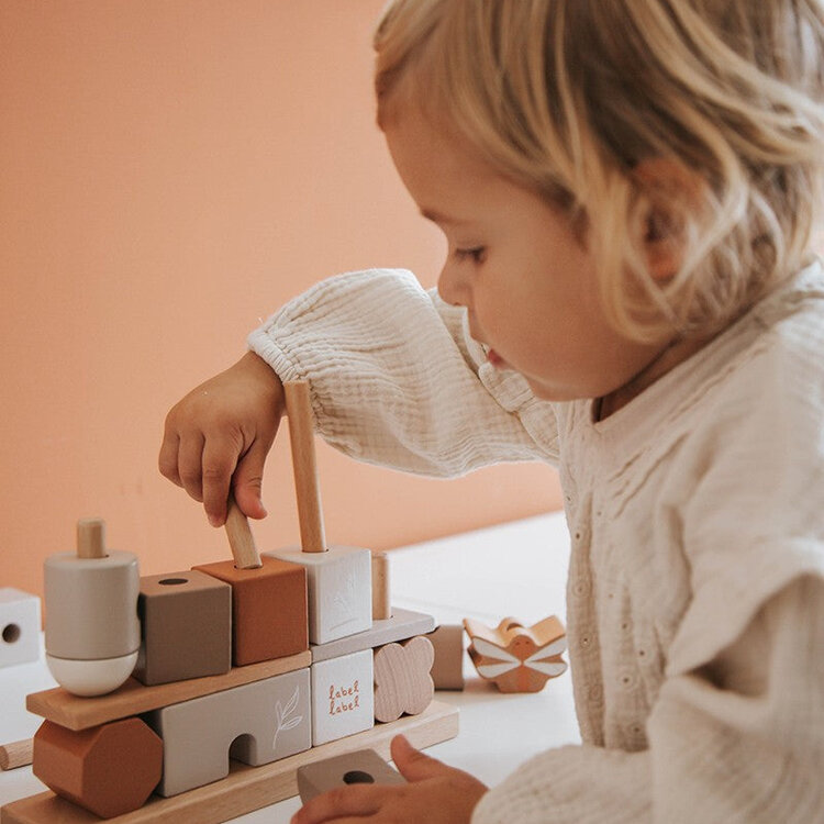 Deze stapelblokjes van Label Label zijn vervaardigd uit kwaliteitsvol FSC gecertificeerd beukenhout en werden voorzien van prachtige nougat tinten met behulp van kindvriendelijke verf op waterbasis.