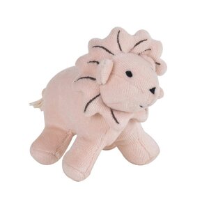 De leeuw is van organisch katoen (GOTS gecertificeerd) en wanneer je erin knijpt maakt het knuffeltje geluid. Het knuffeltje kan gewassen worden op een handwas programma.