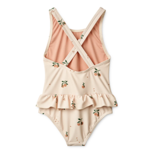 Here comes the sun! Laat je kleine meid grote zandkastelen bouwen of houd een spontaan watergevecht op zondagmiddag in dit hippe badpak Amara Peach Sea Shell van Liewood.