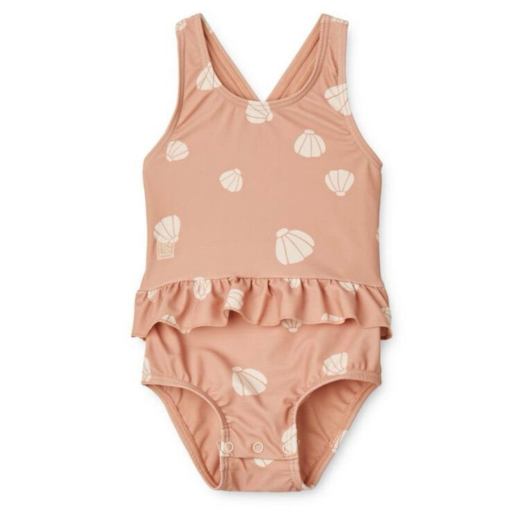 Het bedrukte Amina-badpak is een babyversie van ons iconische Amara-badpak en biedt speelse details zoals een geplooide volant in de taille, gekruiste schouderbandjes aan de achterkant en drukknopen voor het gemakkelijk verschonen van luiers.