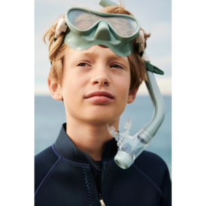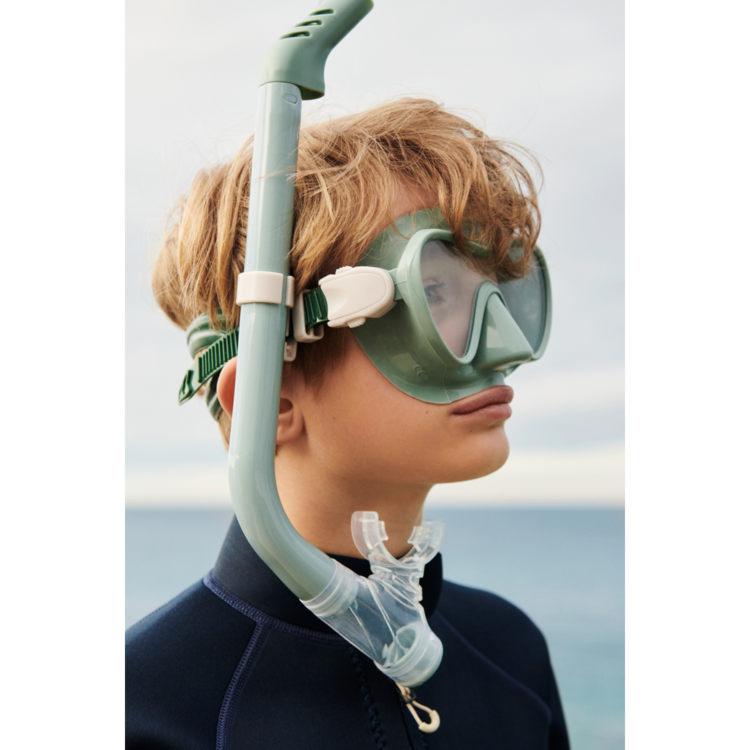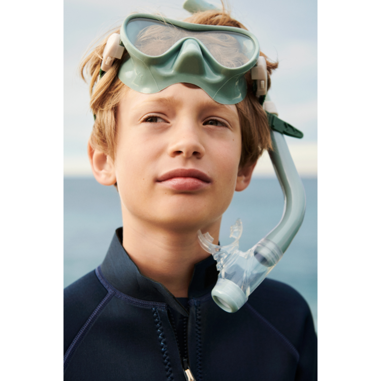 Maak je klaar voor onderwateravonturen met de Jacques-masker- en snorkelcombinatie. Het masker heeft een zachte siliconen rand, een lens van gehard glas en twee drukknopgespen die op het frame draaien, waardoor het een uitstekende keuze is voor beginnende snorkelaars. De afneembare snorkel heeft een semi-droge bovenkant en een verschuifbare snorkelhouder voor gebruiksgemak.