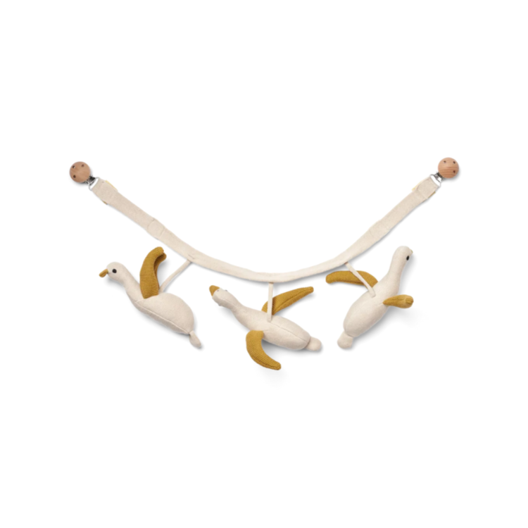 - Te bevestigen aan de kinderwagen met de houten/metalen clips