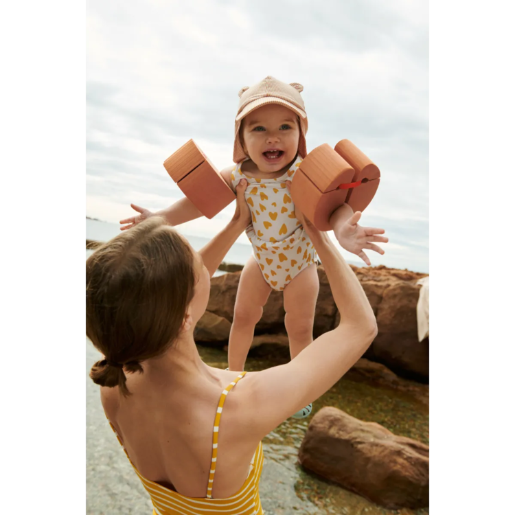 Gemaakt van 100% BPA-vrij PVC en voorzien van een verstelbaar bandje met drukknoopje, waardoor ze makkelijk aan te trekken zijn.