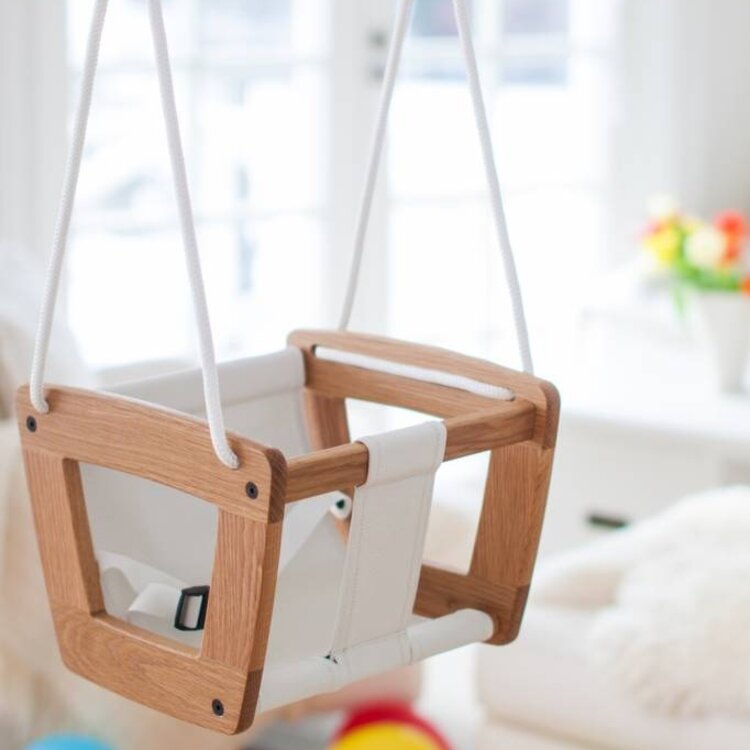 De schommel is een echte eye-catcher voor in de kinderkamer en zelfs voor in de woonkamer. De Lillaguanga schommel is van eikenhout en daarom ook geschikt voor buiten.