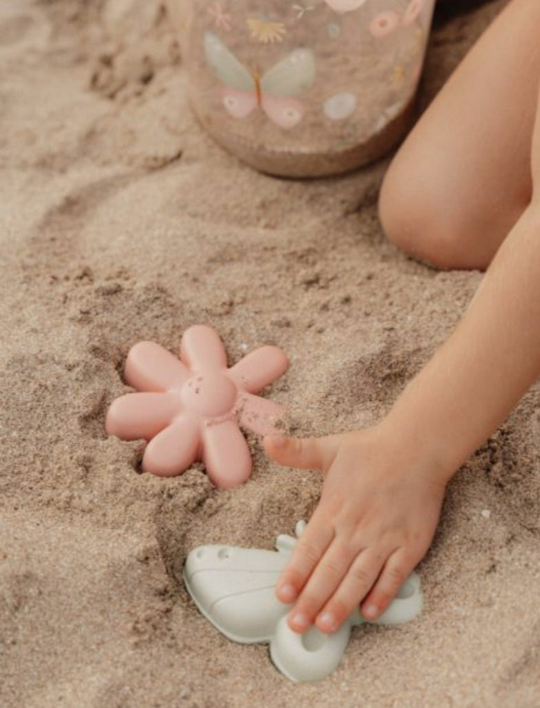 Breng een vleugje lente naar het strand of de zandbak met deze schattige zandvormpjes van Little Dutch. Het Flowers & Butterflies thema zit vol lieve details en zachte kleuren, perfect voor kleine handjes en grote fantasie.
