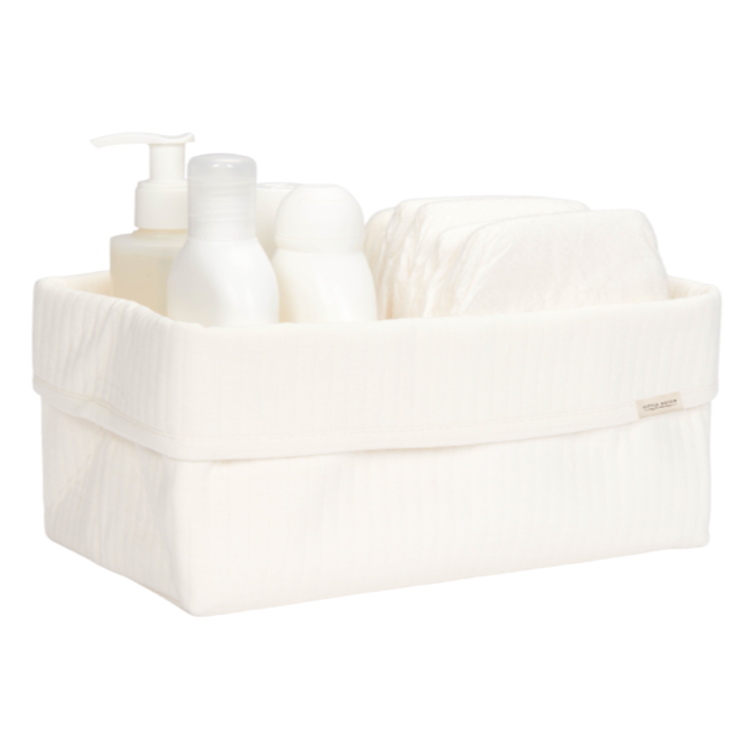 Geen rondslingerende luiers, tubes en flesjes meer: met dit kleine commodemandje van Little Dutch blijft de commode mooi opgeruimd en georganiseerd! De commodemand van Little Dutch is prachtig afgewerkt en biedt een opbergplek aan alle producten die je dagelijks nodig hebt om je baby te verzorgen. Een mooie accessoire voor in de kinderkamer. Deze uit de Pure Soft White collectie bevat een prachtige, zachte witte kleur. Ook verkrijgbaar in andere formaten en vormen. |