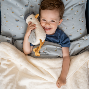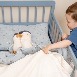 Een prachtig ledikantdeken dat je kindje heerlijk warm houdt. Met aan de ene kant een zachte jersey stof en aan de andere kant een heerlijke teddy stof is het deken ook te gebruiken als omslagdoek, sprei of speelkleed. Deze heeft een prachtige, zachte witte kleur die je gemakkelijk kan combineren. Je kunt hem gewoon wassen in de wasmachine op 30 graden!