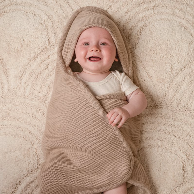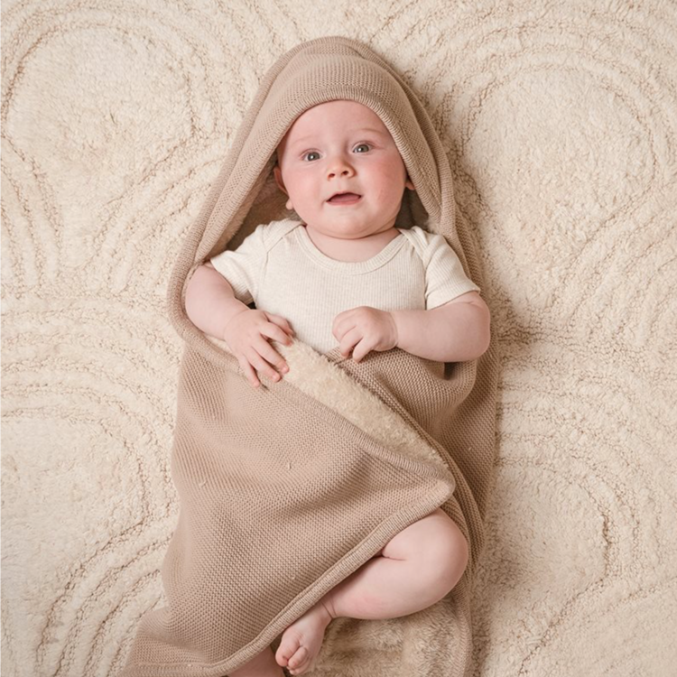 De buitenkant van de omslagdoek is gemaakt van 100% biologisch katoen. Door het formaat van 75 x 75 cm kun je de omslagdoek gebruiken tijdens het voeden, voor onderweg, na het badje, bij het consultatiebureau etc. Hierdoor blijft je kindje lekker warm. In de omslagdoek zit een opening, zodat de doek ook met de gordels van de auto- en/of wipstoel te gebruiken is. Zo blijft je kindje zowel onderweg als thuis heerlijk warm.