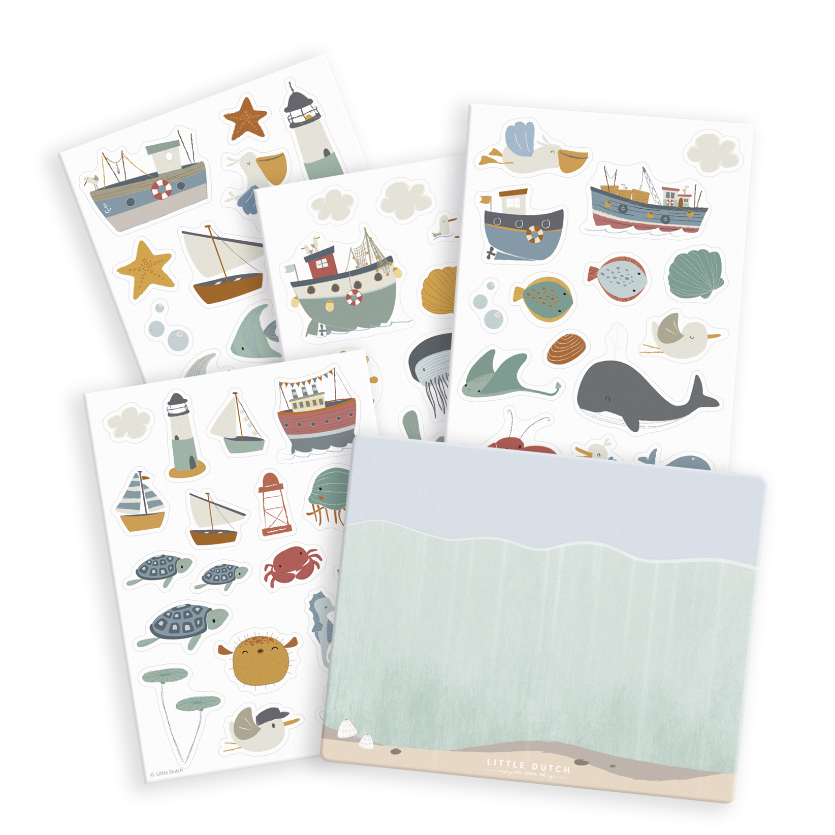 Kom, laat je creativiteit zien! Met deze stickers maak je van elk raam een kunstwerk. Gebruik ze in de auto of thuis. Op een raam, een spiegel, de bijbehorende papieren achtergrond of zelfs een glazen pot! De 4 vellen met meer dan 50 raamstickers vol met bootjes, meeuwen, vissen en zeedieren kun je op tal van manieren gebruiken. De raamstickers zijn eenvoudig te verwijderen en opnieuw te gebruiken voor nieuwe creaties. Leuk, makkelijk en zeer vermakelijk voor je kleintje!