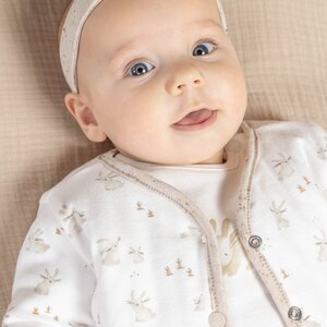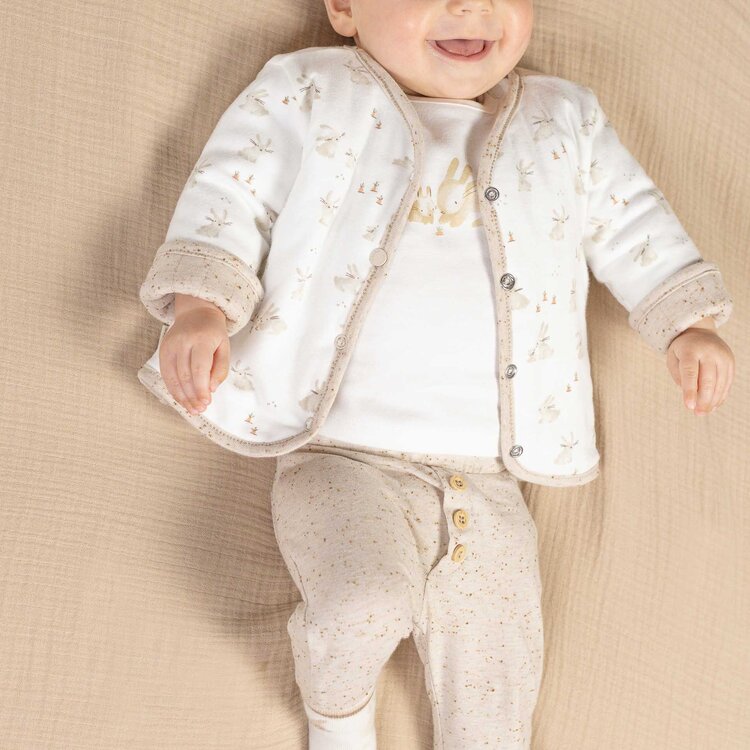 Het Little Dutch Reversible Babyjasje Baby Bunny Nappy Sand is een schattig en praktisch jasje voor je kleintje. Dit omkeerbare design biedt twee stijlvolle looks: een lieve Bunny-print en een neutrale zandkleur. Gemaakt van heerlijk zacht en ademend katoen voor optimaal comfort.