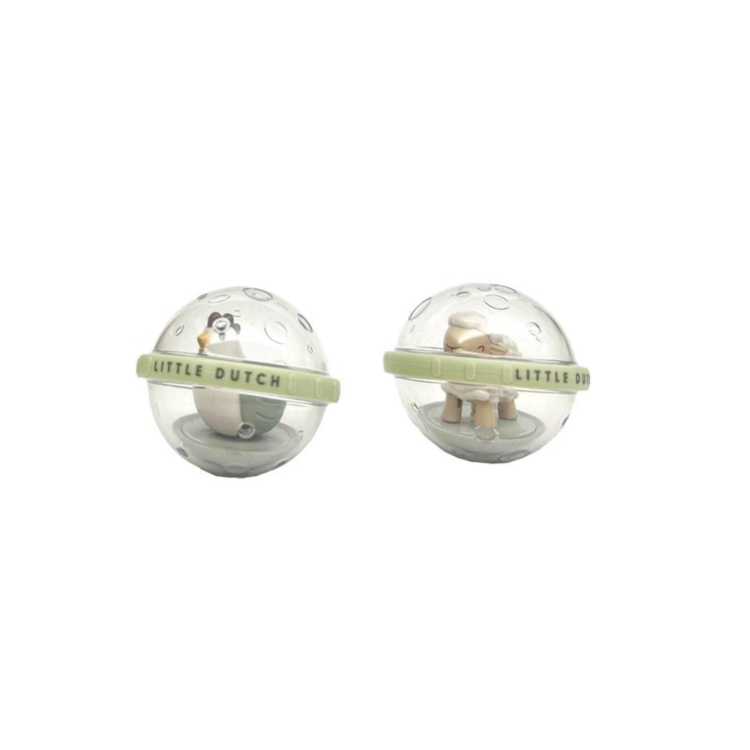1,2,3 rollen maar. Deze roterende ballen zijn voorzien van twee superleuke boerderijvriendjes, namelijk het schaapje en de kip! De bal kan prima mee in bad en hij blijft drijven op de oppervlakte, maar droog hem na gebruik wel netjes af. Het formaat is perfect voor kleine handjes om goed vast te houden. Formaat: 6.5cm. Verpakt in een touch box. Geschikt voor kinderen vanaf 4 maanden.