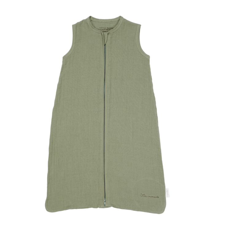 De Little Dutch slaapzak zomer hydrofiel Olive is gemaakt van biologisch katoen en Oeko-Tex gecertificeerd. De voorgewassen hydrofiele stof voelt extra zacht aan. Het biologisch katoen is zeer ademend. Deze slaapzak is ideaal voor de warme nachten tijdens de zomer. De slaapzak sluit naar beneden toe zodat je kindje de slaapzak niet makkelijk zelf open kan ritsen. Over de rits zit een flap, zodat de gevoelige babyhuid beschermd blijft. De slaapzak is verkrijgbaar in 70 cm, 90 cm en 110 cm.