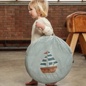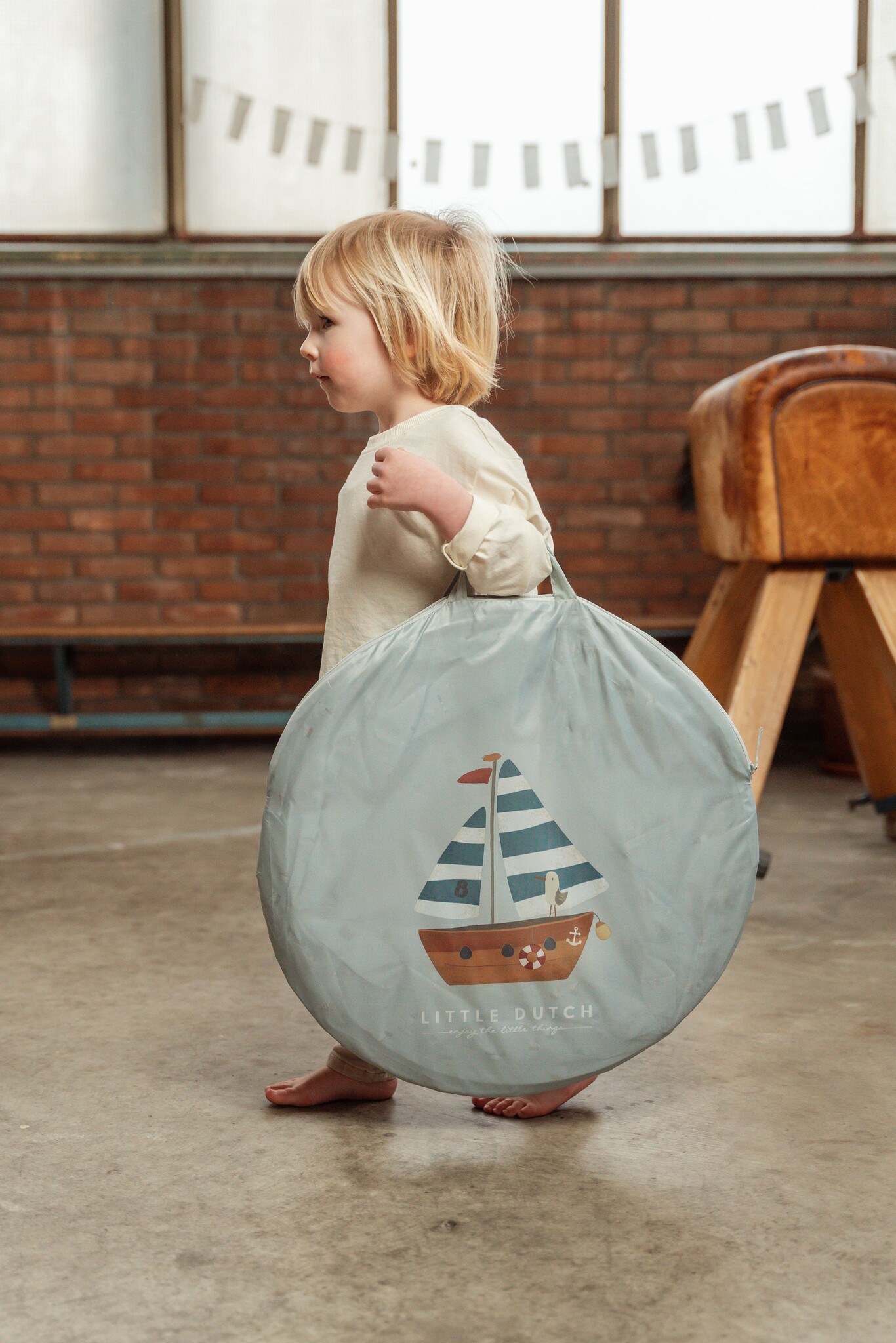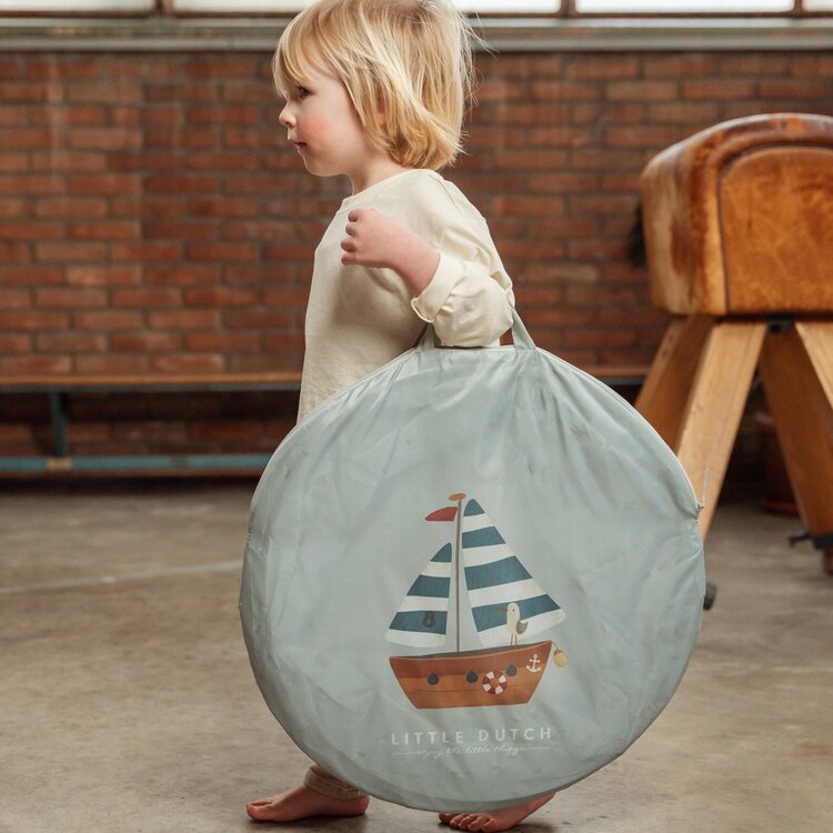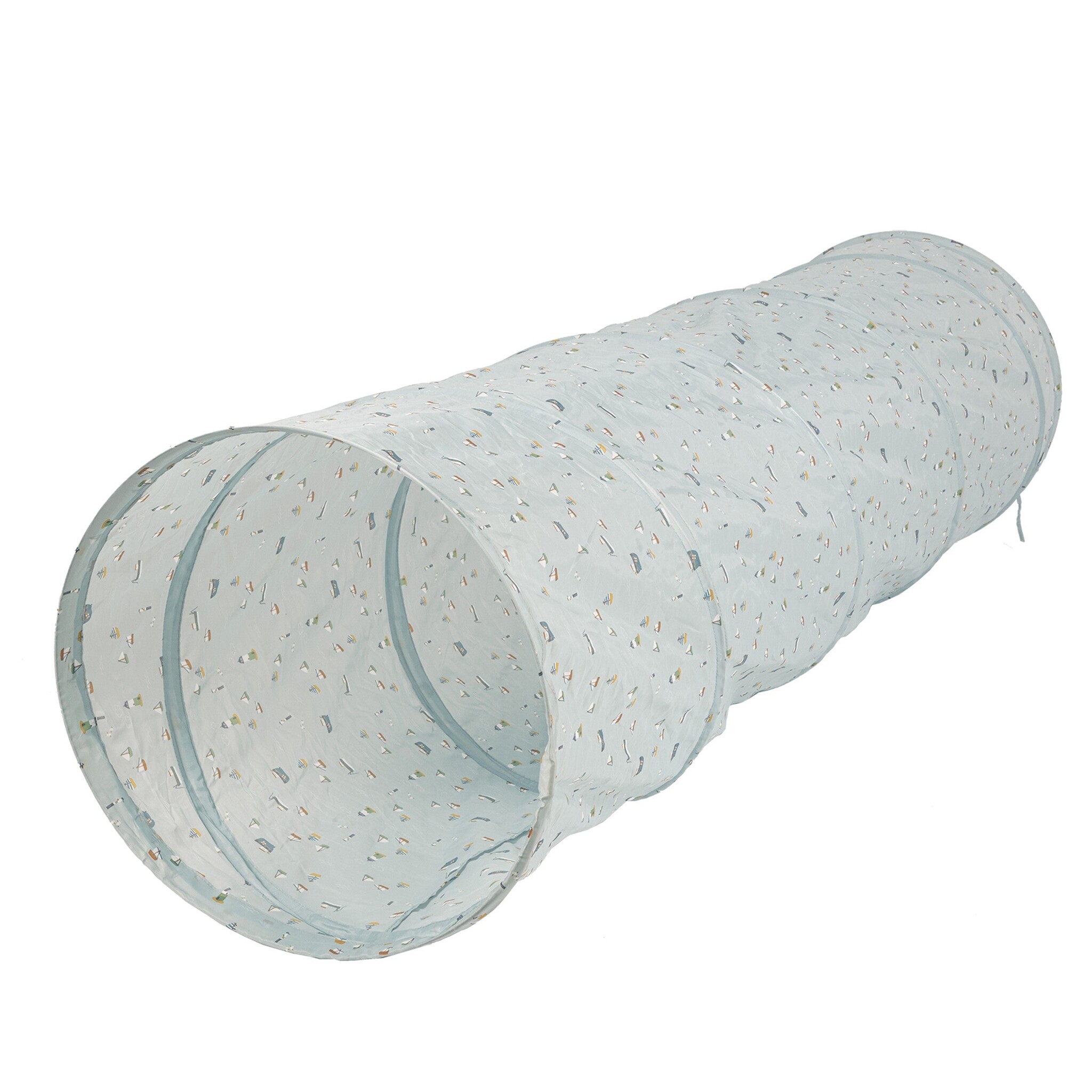 Kruip, verstop en … kiekeboe! Oefen het kruipen met deze tunnel. Ben je tot het einde gekomen? Doe het dan nog een keer! Het is zo leuk. En het is ook nog eens een perfecte schuilplaats! Kruiptunnels zijn geweldig voor het ontwikkelen van de grove motoriek van uw peuter, het aanleren van zintuiglijke waarneming en het bieden van een veilige omgeving om te oefenen en te verkennen. De kruiptunnel is lichtblauw en versierd met het dessin van de Sailors Bay-collectie. Hij is eenvoudig op te vouwen en op te bergen in de meegeleverde tas.