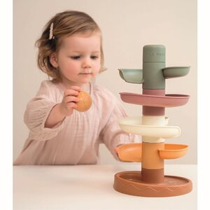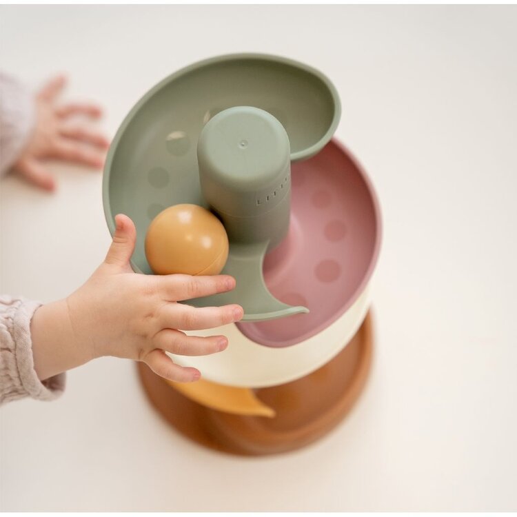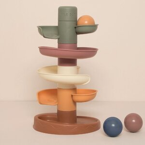 Laat de bal maar rollen! De spiraaltoren van Little Dutch zorgt voor eindeloos veel speelplezier. Deze kleurrijke set bestaat uit 5 herkenbare vintage gekleurde delen die jouw kleintje gemakkelijk op elkaar stapelt. Laat de ballen één voor één op de bovenste laag vallen en kijk hoe ze achter elkaar naar beneden rollen en slingeren. De spiraaltoren draagt bij aan de ontwikkeling van de hand-oog coördinatie en leert kleintjes over oorzaak en gevolg, waarmee het zowel leuk als leerzaam spelen is. Bij de spiraaltoren zitten standaard 3 lichte en gemakkelijk vast te pakken ballen in verschillende kleuren die bij beweging een geluidje maken. Dit speelgoed is uitgevoerd in de super trendy Little Dutch retro kleuren. De afmeting is: 18 x 18 x 30 cm. Wordt geleverd in full-colour doos. Geschikt voor kinderen vanaf 18 maanden.