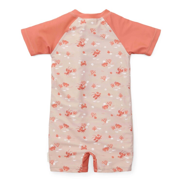 Het zwempakje is gemaakt van UV beschermende stof en is verkrijgbaar in de maten 62/68, 74/80, 86/92 en 98/104. Combineer met een handdoek en je favoriete zomeritem en je hebt alles wat je nodig hebt voor urenlang waterplezier. Vergeet niet om altijd zonnebrandcreme te gebruiken om je kleintje te beschermen.