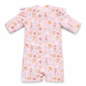 Het zwempakje is gemaakt van UV beschermende stof en is verkrijgbaar in de maten 62/68, 74/80, 86/92 en 98/104. Combineer met een handdoek en je favoriete zomeritem en je hebt alles wat je nodig hebt voor urenlang waterplezier. Vergeet niet om altijd zonnebrandcreme te gebruiken om je kleintje te beschermen.